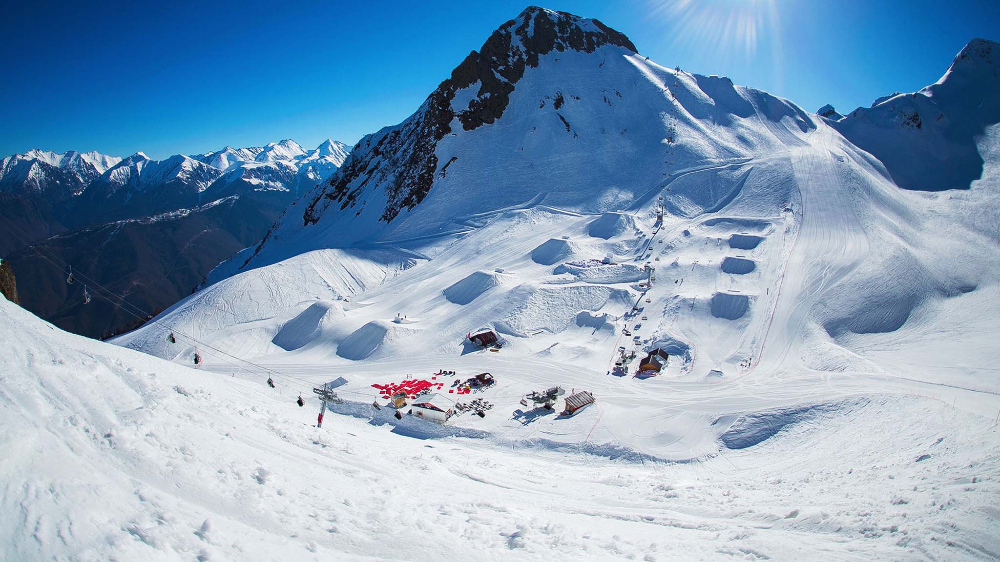 На курорте «Красная Поляна» самая большая зона вечернего катания — пять километров трасс, которые имеют освещение — с высоты 1460 до Поляны 960. В зонах Цирк-2 и Поляна 960 регулярно возводят сноу-парки со специальными приспособлениями для выполнения трюков (рейлы, трамплины, слайд-боксы).