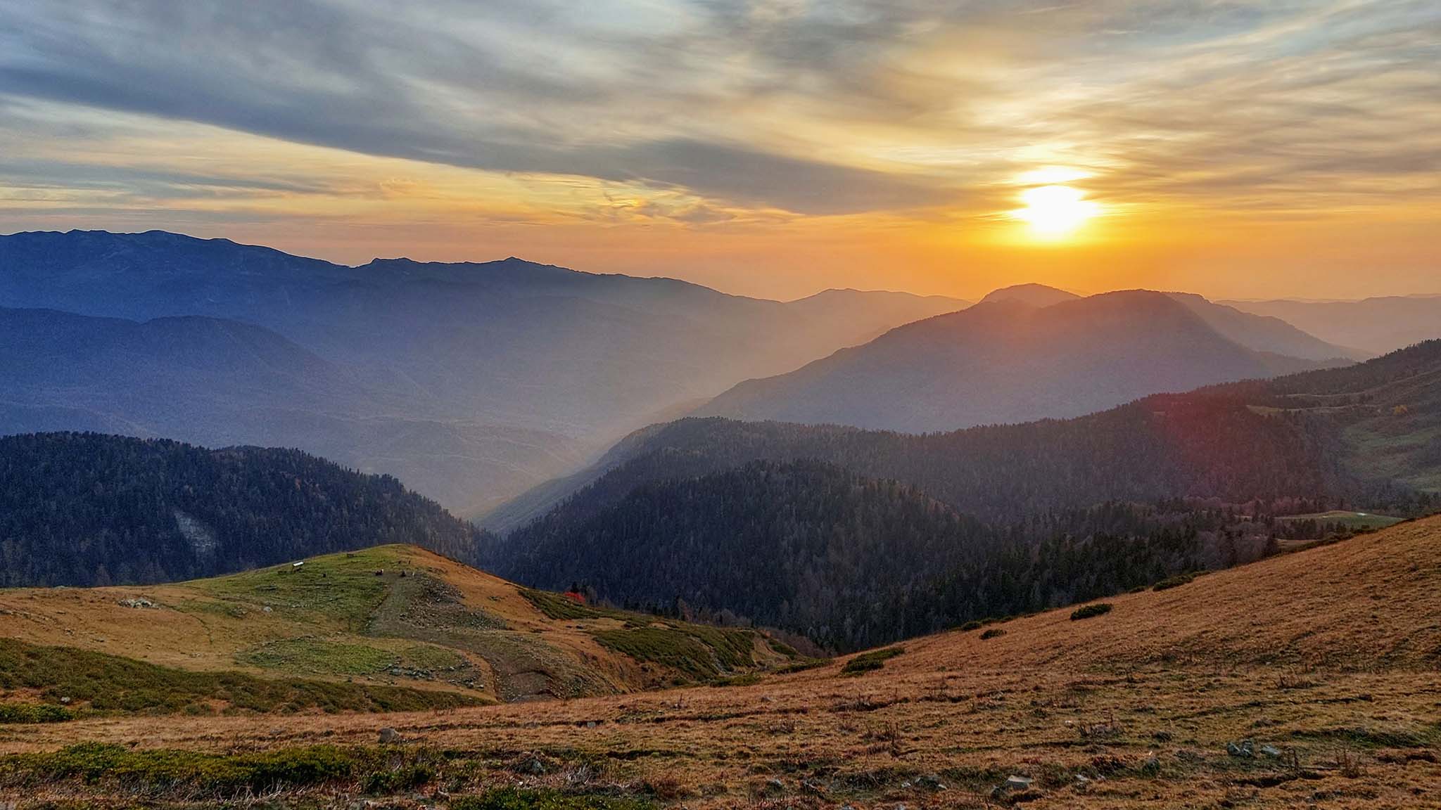 Солнце в горах осенью садится рано. Например, на Розе Пик закат можно встретить: