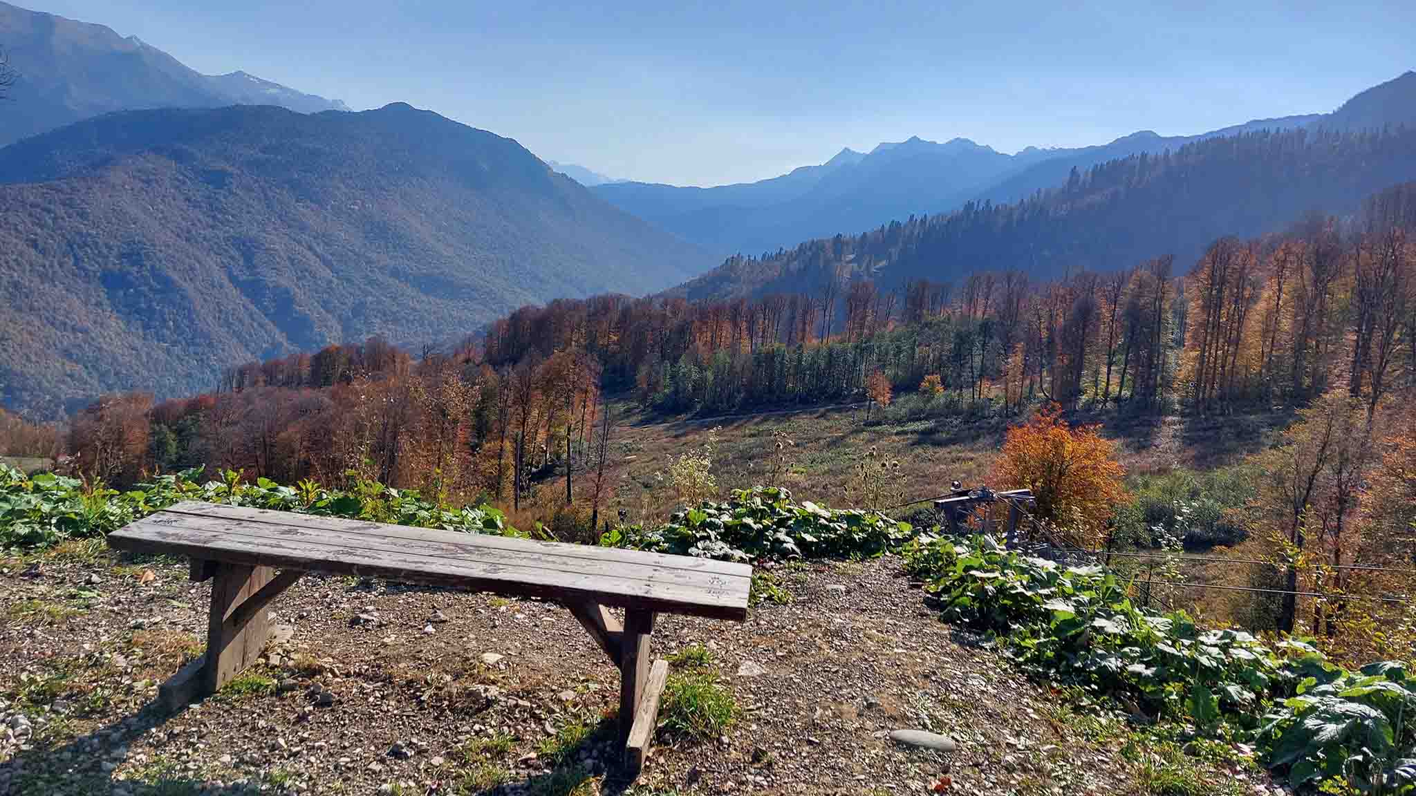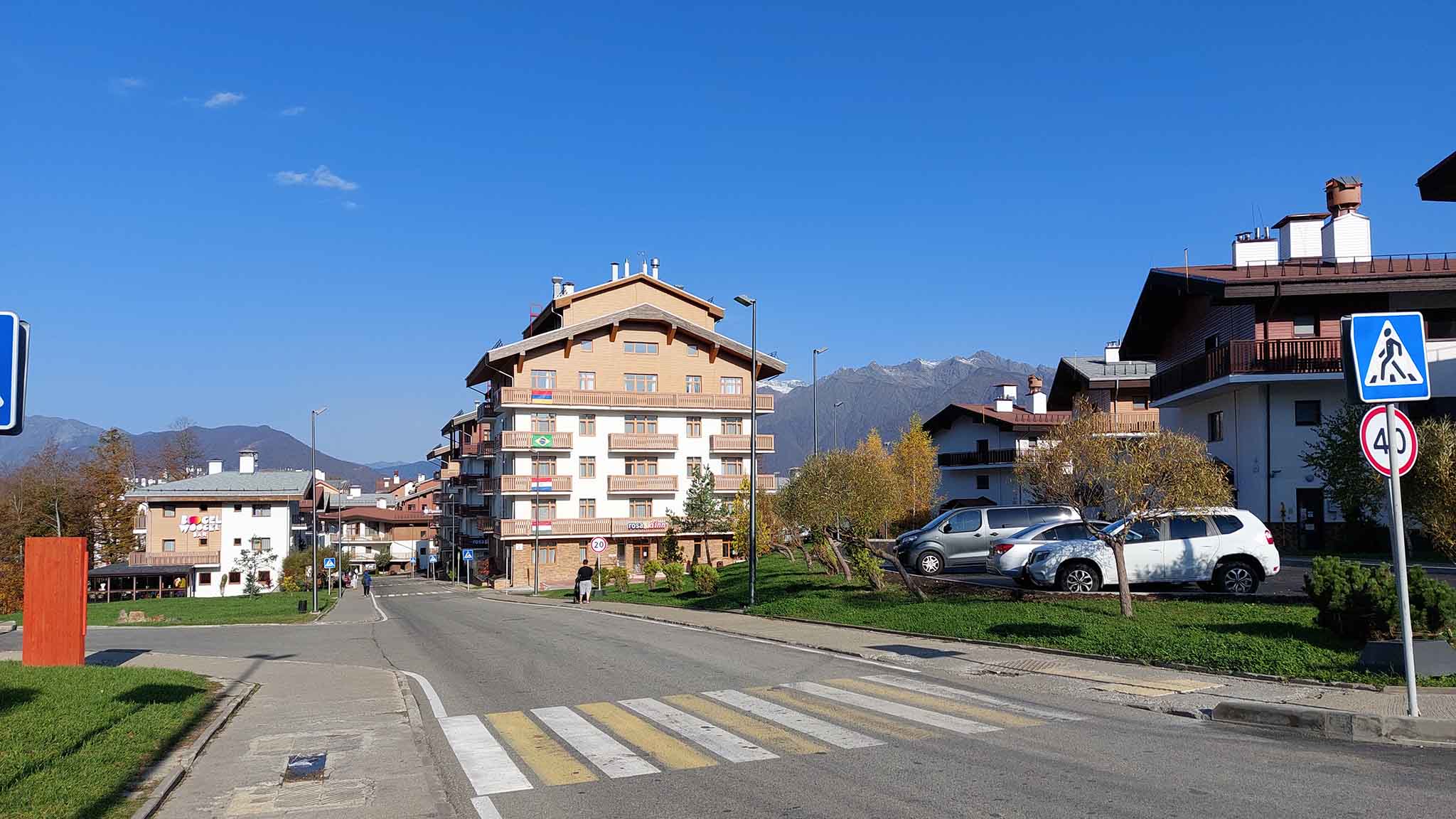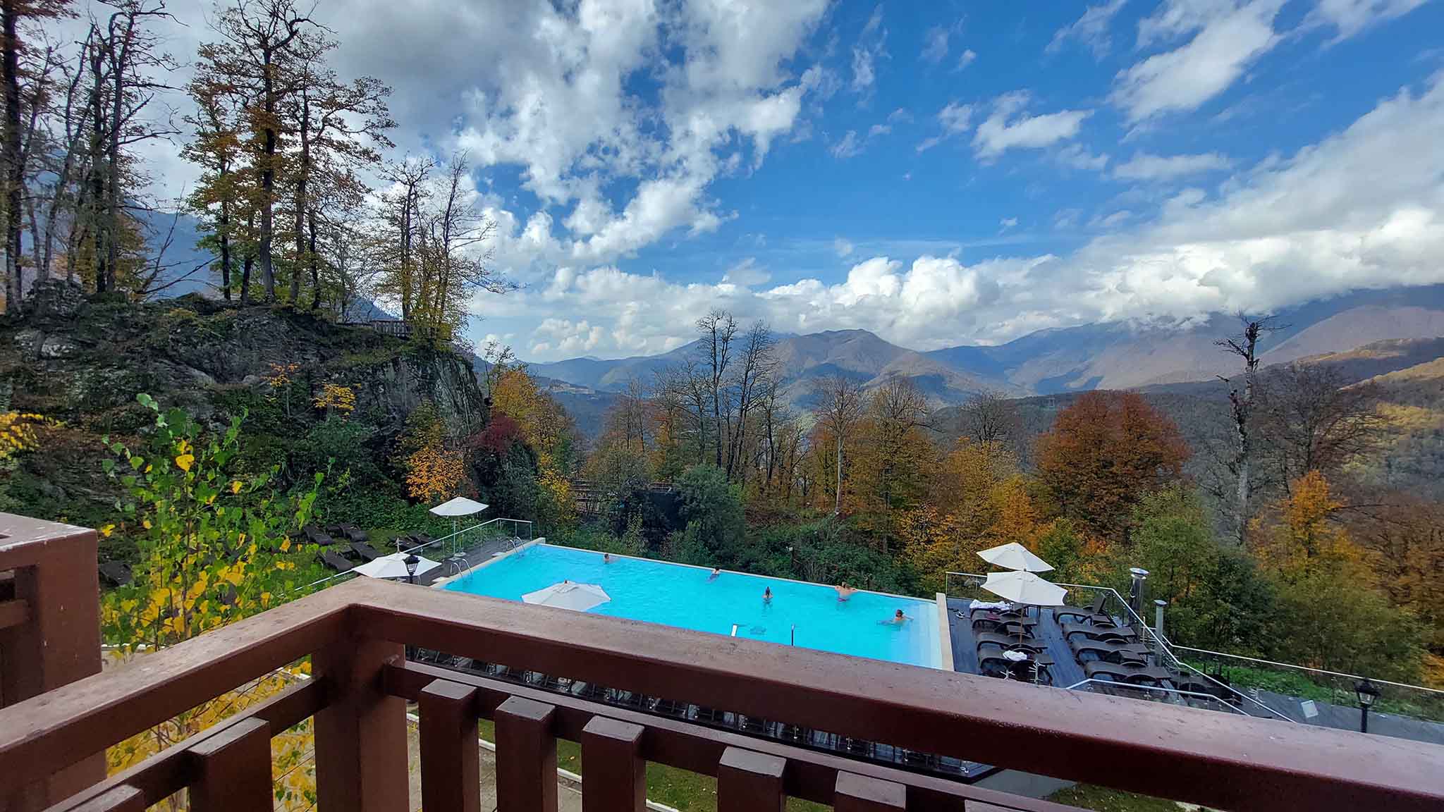 Осенью на курортах Красной поляны гораздо меньше гостей, чем летом — не говоря уж о зимнем сезоне катания. Все меньше туристов приезжают одним днем в горы с побережья, загрузка отелей тоже снижается. На пешеходных маршрутах остаются любители спортивной ходьбы, по тротуарам курортных зон медленно гуляют молодые родители с колясками — везде царит покой и размеренность.