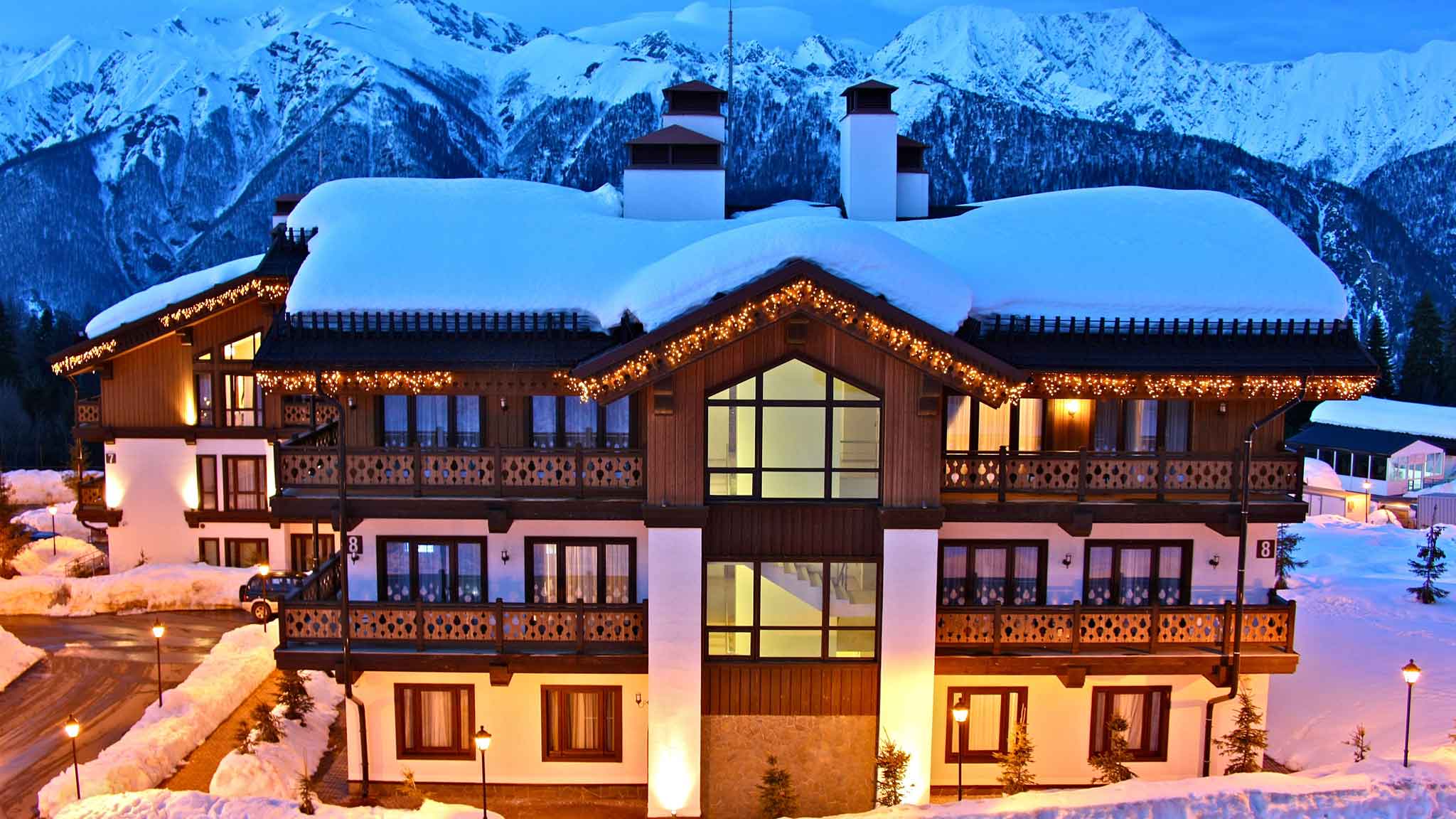 Голубые ели, роскошные шале с каминами, специальное меню в ресторанах, гирлянды, игрушки — почти как в Альпах, но бюджетнее. Правда, ненамного. Средняя цена за банкет 31 декабря — от 20 тысяч рублей для взрослых и 10 тысяч для детей до 11 лет. Что включено? Концерт и застолье. Канапе с черной икрой и блинчики с красной, холодец из трех видов мяса, салаты с камчатским крабом и телятиной, тигровые креветки с шафрановым соусом и крабовым биском.