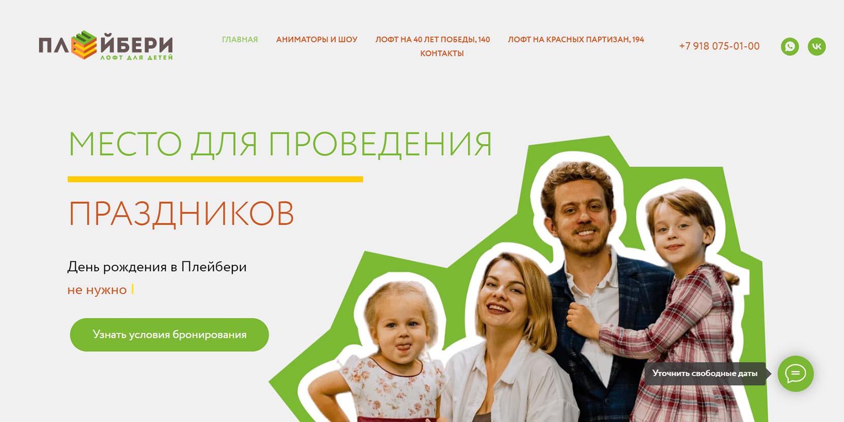 Просторная локация, которая подходит для квестов, мастер-классов и разных шоу — от научного до мыловарения. Детям сделают аквагрим или флеш-тату. В «Плейбери» есть более 30 программ на любой кошелек. Героя и тематику праздника ребенок может выбрать сам.