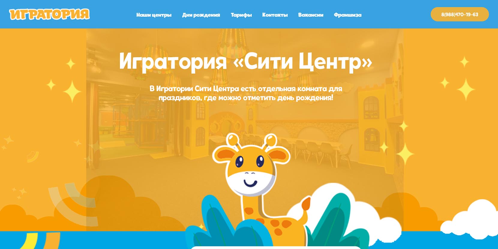 Атмосфера «Игратории» с первых же минут захватит детей. Чего здесь только нет — винтовые горки, сухие бассейны, карусели-крутилки, столы для конструирования, интерактивные игрушки. Кроме того, пространство дополнено скалодромами и интерактивными песочницами. В день рождения ребят позовут на увлекательные мастер-классы и анимацию. Для гостей именинника будут открыты банкетные комнаты.