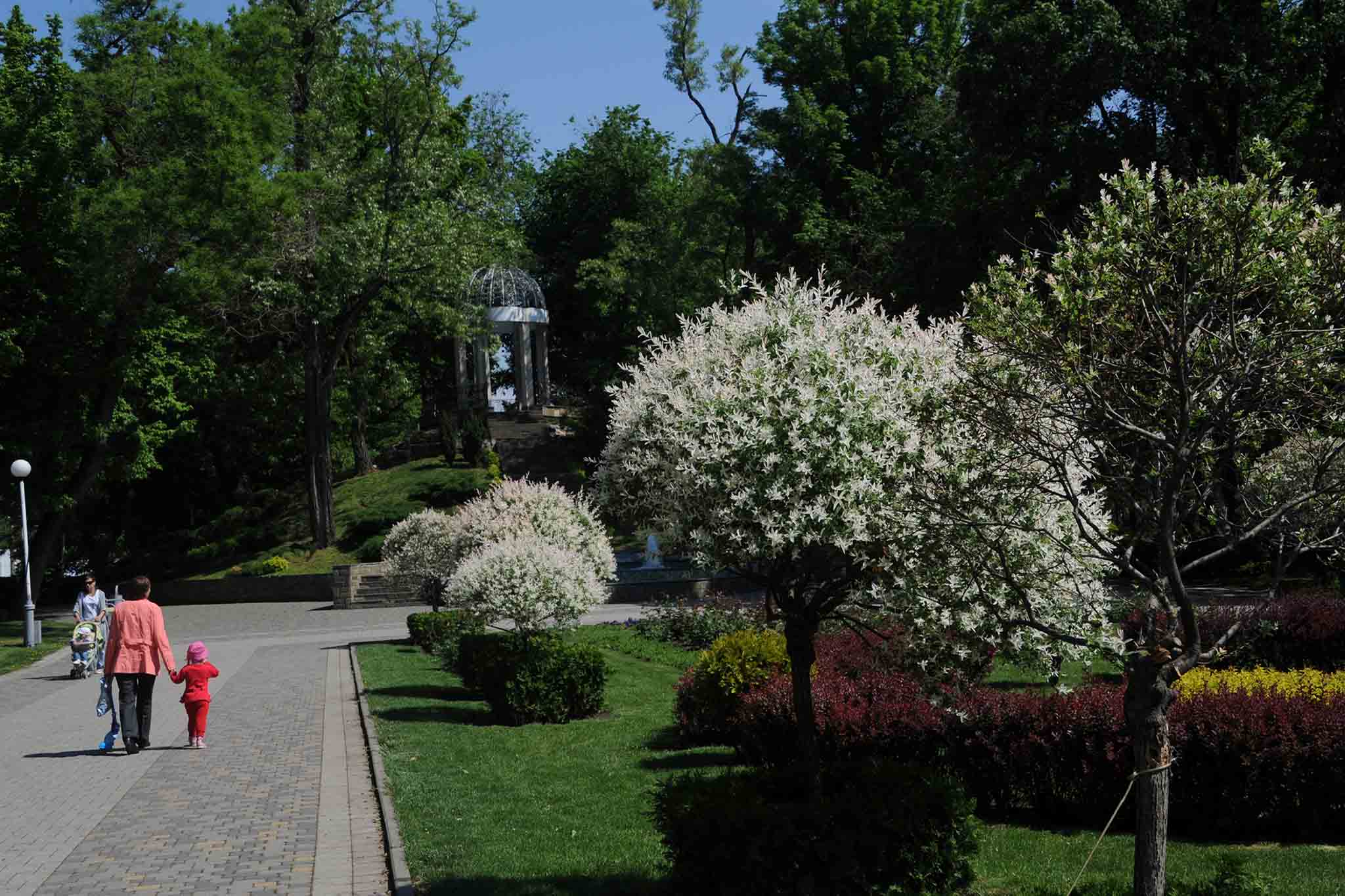 Это место отдыха, более известное как парк Галицкого, называют одним из самых красивых в Европе. Прогулочные аллеи, украшенные фонтанами и оригинальными арт-объектами, сменяются цветущими клумбами и тенистыми уголками для отдыха. В парке оборудованы детские игровые зоны. Для самых маленьких — с песчаным покрытием. Есть горки, качели, водный лабиринт, веревочный панда-парк, скалодром, скейт-площадка и другие развлечения. Парк украшают масштабные цветочные композиции, разнообразные экзотические растения и архитектурные формы. Здесь есть магазинчики с кофе, мороженым и другими снеками. Весной может показаться, что вы попали на цветение сакуры — нежно-розовым здесь цветет слива Нигра.