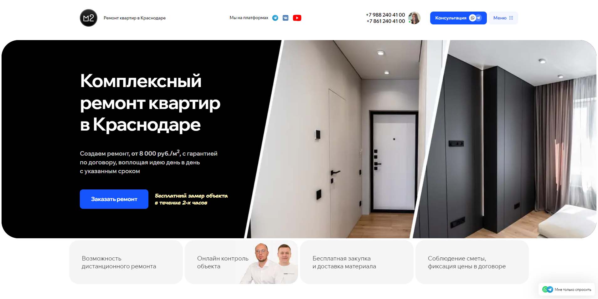Отмечают, что с каждому проекту подходят с душой. Занимаются ремонтом квартир, домов и коммерческой недвижимости уже 10 лет. В цифрах это 632 завершенных проекта и почти 600 довольных семей. В отзывах клиенты отмечают, что сумма потраченных средств не превысила смету, а работы выполнены качественно и в срок. Выезд на объект, замеры, оценка и консультация — бесплатны. Работают по договору с гарантией в 2 года, в ходе ремонта предоставляют фото- и видеоотчеты. На объекте трудятся проверенные бригады строителей, за которыми не придется переделывать.