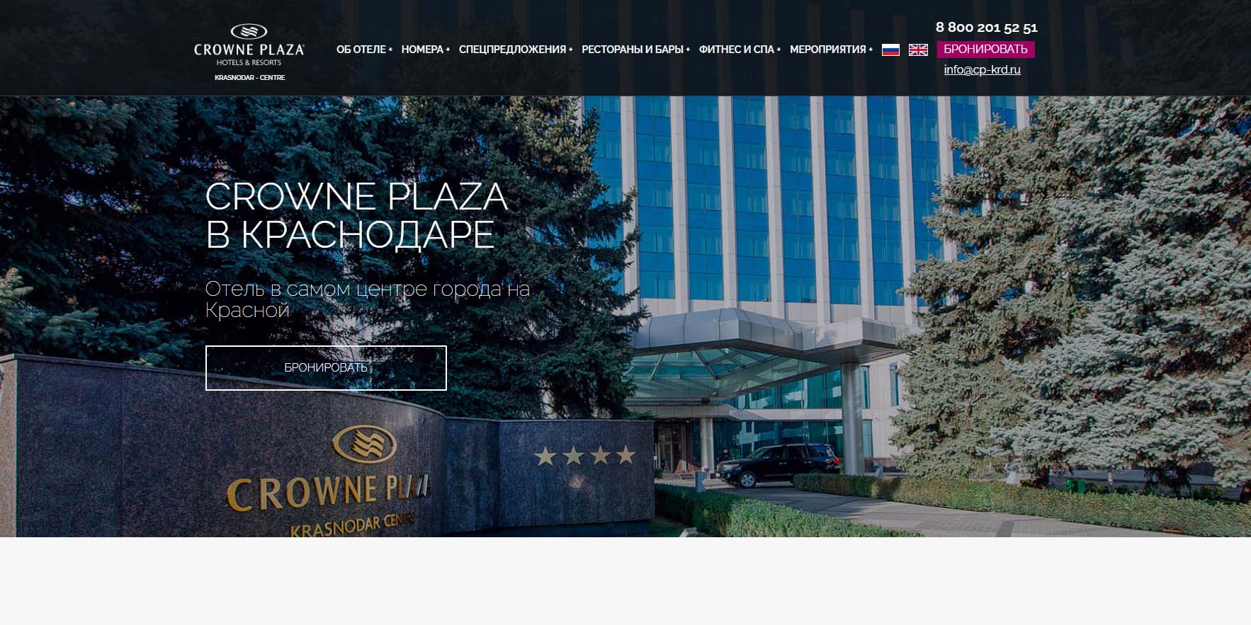 Гостиница международной отельной сети в Краснодаре позволяет отдохнуть в номерах, оформленных в разных стилях: «Восточном», «Конструктивизм», «Классическом», «Японском» и даже «Президентском». Гости ценят удобное расположен в центре города. В отеле есть фитнес-центр, бассейн, сауна и хаммам, работают три ресторана. Для проведения деловых встреч и мероприятий предусмотрено несколько конференц-залов.