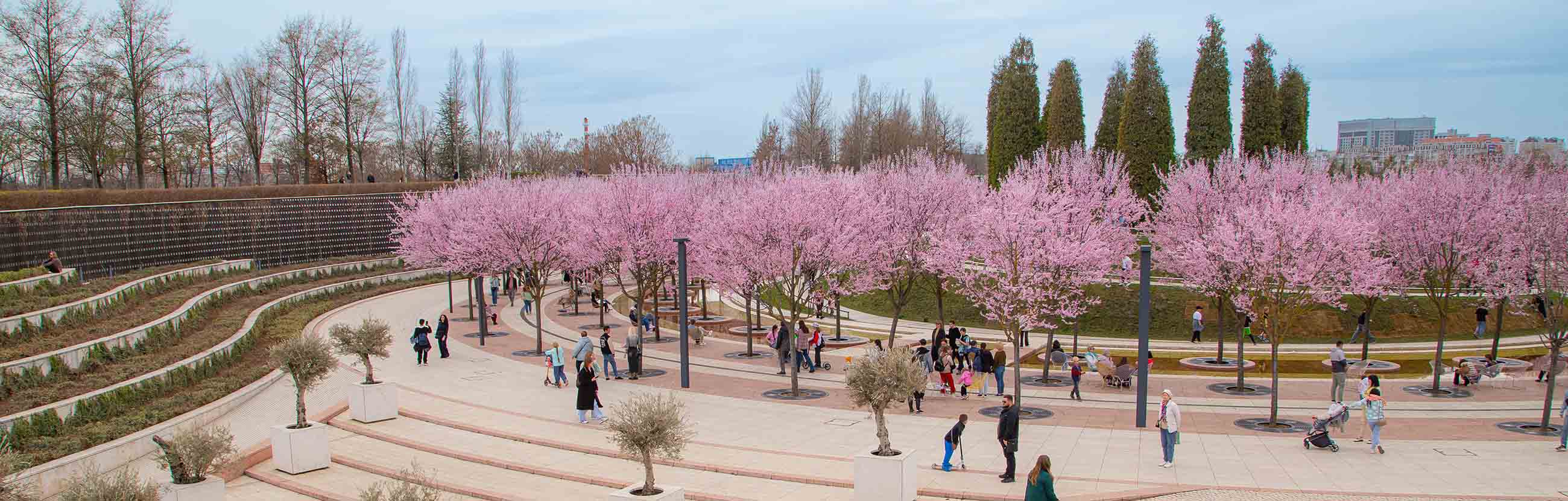 Здесь на площади почти в 23 гектара находится множество прогулочных зон, великолепных фонтанов, водоемов, всевозможных инсталляций — и все это утопает в цветах и зарослях деревьев. А еще тут есть скейт-парк, водный и музыкальный лабиринты, скалодром, всевозможные спортплощадки, а в марте 2023 года открылся Японский сад — воплощение изящества и спокойствия в лучших традициях паркового искусства Страны восходящего солнца.