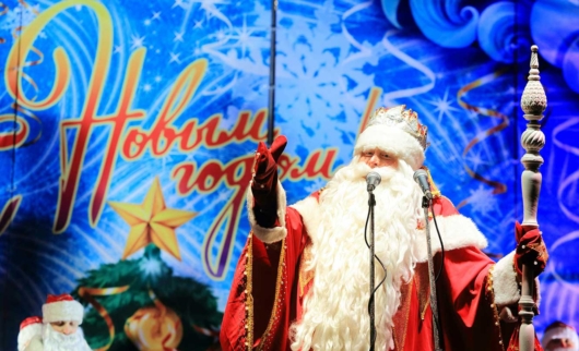 Место притяжения для гостей — трон Деда Мороза. Возле него малыши рассказывают стихи, а Снегурочка угощает их конфетами и мандаринами.