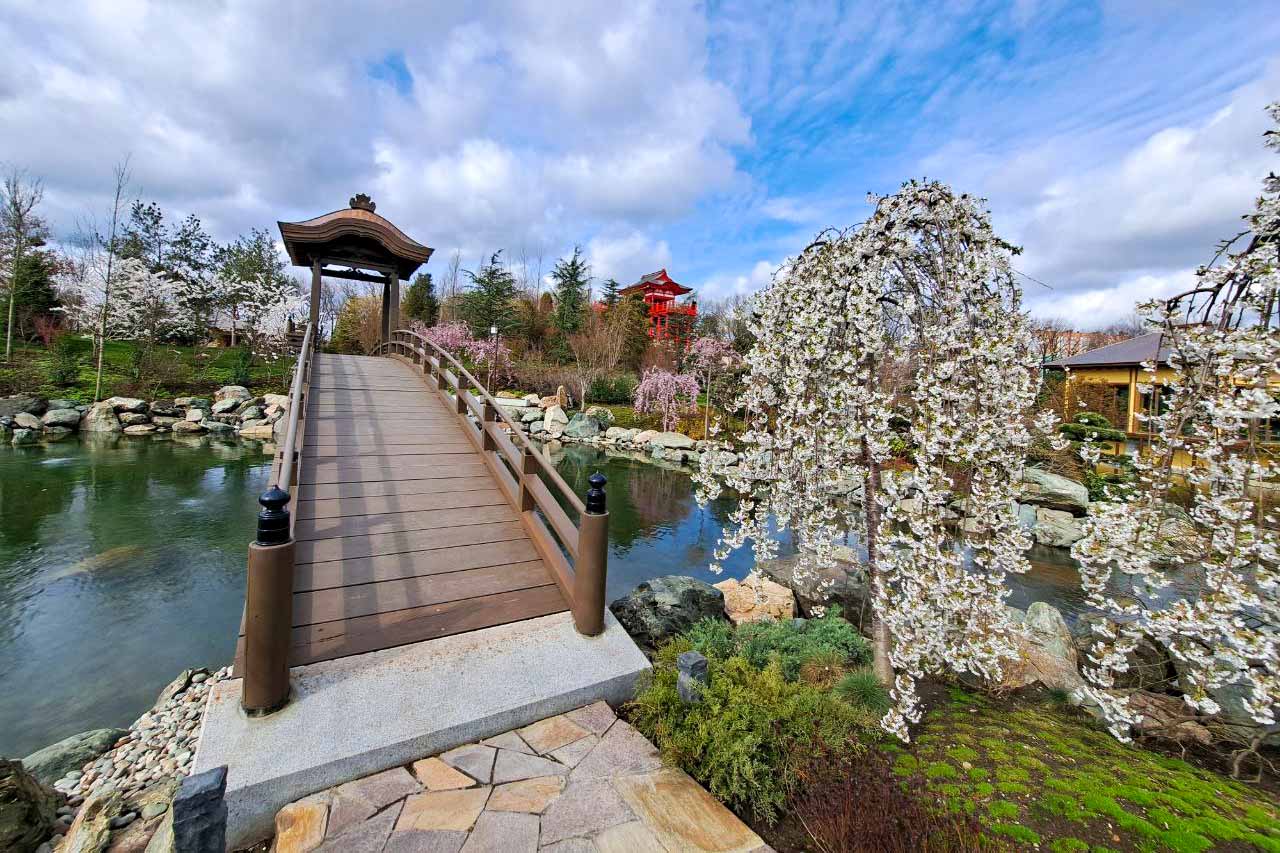 Сухие каменные пруды, водоемы, водопады, ручьи, деревянные беседки, мосты и дорожки — чего только нет в Японском саду. Здесь полностью погружаешься в атмосферу страны восходящего солнца. Сад в парке Галицкого считается самым большим среди подобных объектов за пределами Японии.