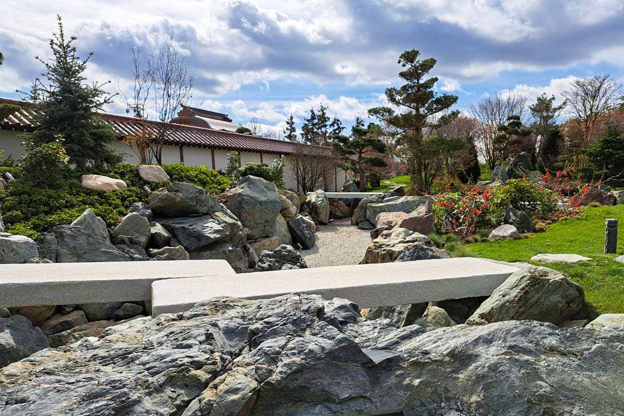 Осенью пожелтевшие деревья и кустарники, которых на территории более тысячи, поражают яркими красками, а зимой особые очертания обретают сады камней.