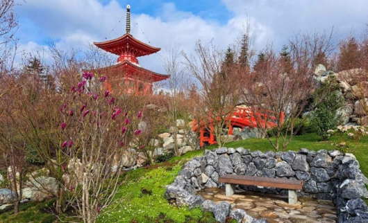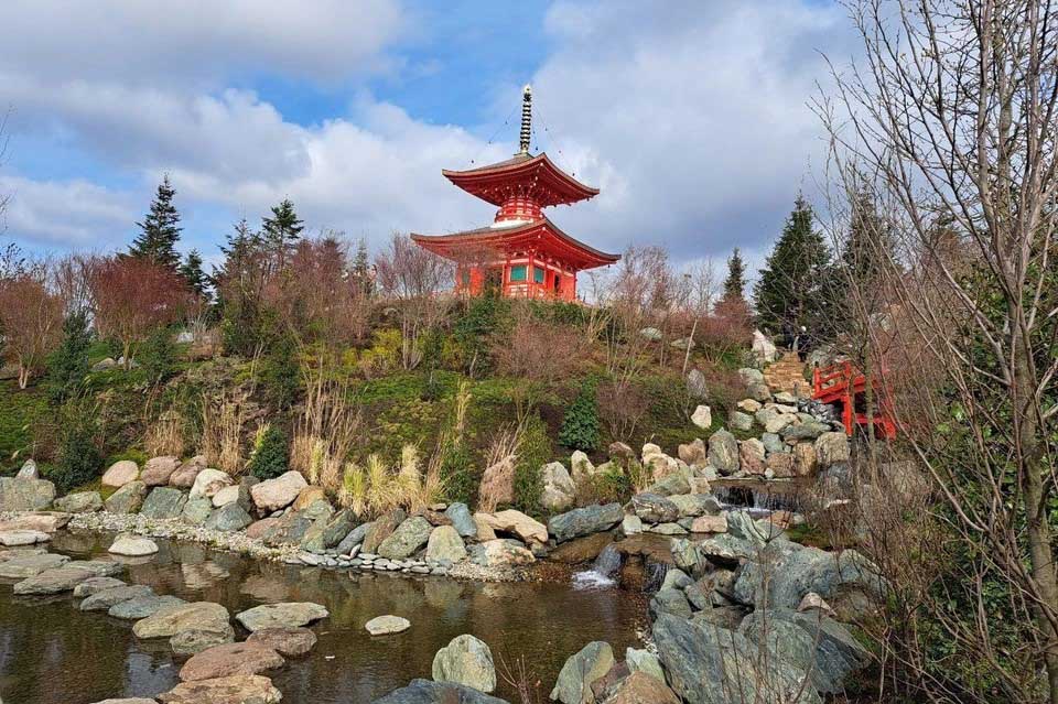 Японский сад выглядит роскошно в любое время года. Весной здесь можно наблюдать за невероятной красотой цветущих деревьев. Летом сад манит прохладой водоемов и тенью бамбуковой рощи, стебли которой вытянулись до пяти метров в высоту.
