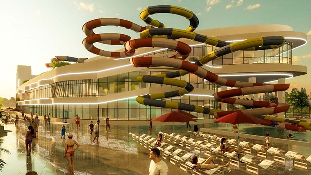 Новый аквапарк на затоне разделят на три зоны. Первая — кафе и бассейн для детей. В центральной части разместится бассейн для взрослых и аттракцион «Серфинг». В последней зоне построят три водных аттракциона со скоростным спуском по винтовым желобам и водным горкам, а также бассейн с водным коридором, из которого можно будет выплывать в открытый бассейн.