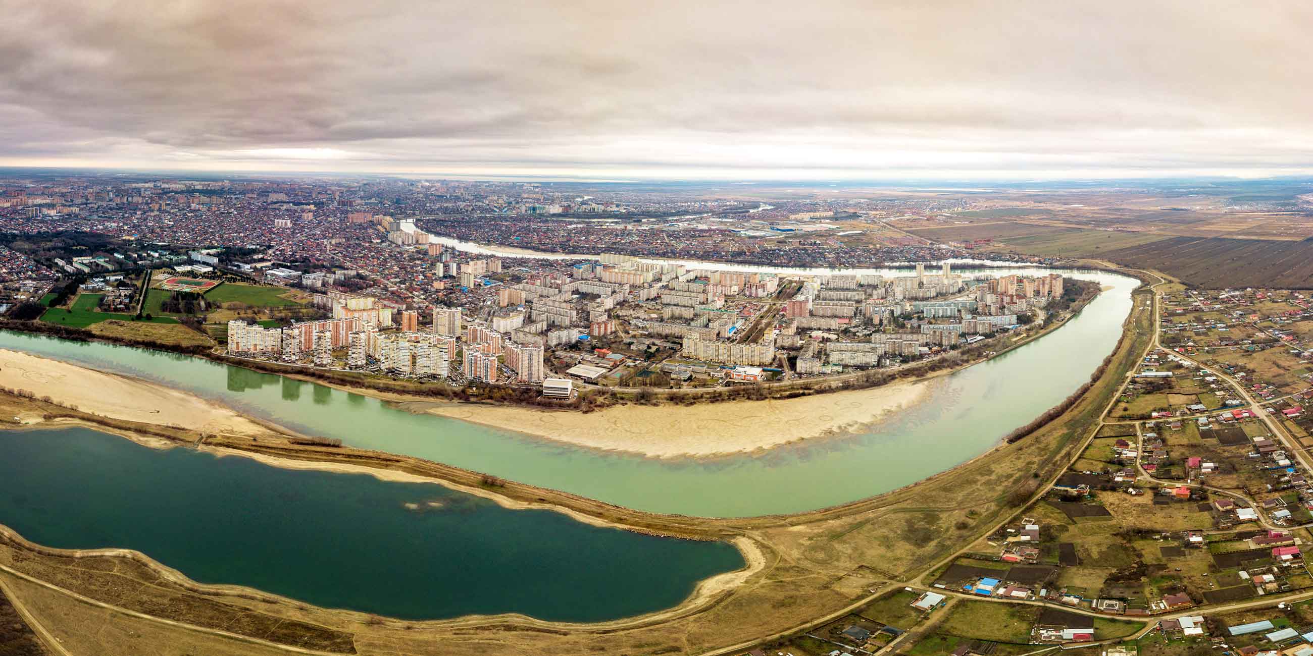 Несколько многоэтажек в ЮМР построены с видом на реку Кубань. Такая перспектива очень привлекает покупателей — вблизи от воды не так жарко в летний зной, а из окон открываются красивые природные виды, не придется любоваться на кирпичные стены соседнего дома.