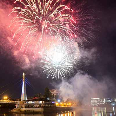 Главную елку города высотой 25 метров устанавливают на площади около мэрии. Именно это место становится главным в праздновании Нового года. Многие предпочитают находиться именно здесь в то время, когда пробьют куранты — обычно погода позволяет гулять ночь напролет.