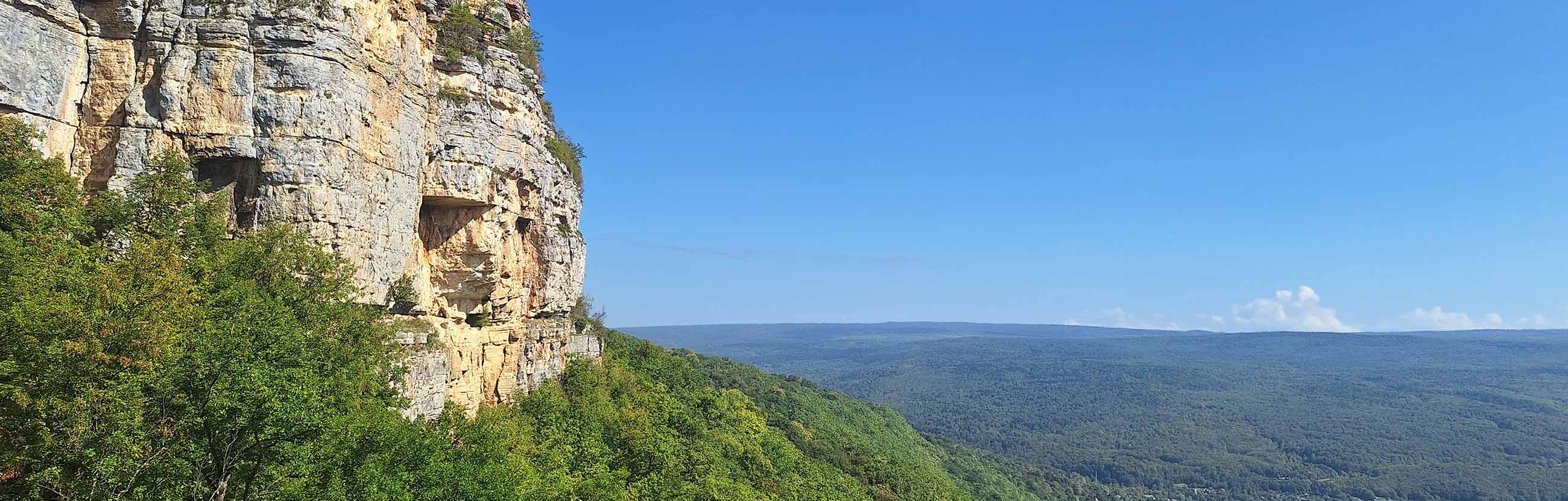 Смотровая площадка на скале – самое популярное место в окрестностях горного поселка Мезмай. Местные жители ласково называют ее «полочка». Природная достопримечательность находится на высоте 1000 м над уровнем моря. Над живописным уступом горы Ленина нависает вторая скала – козырек, поэтому место действительно похоже на полку.