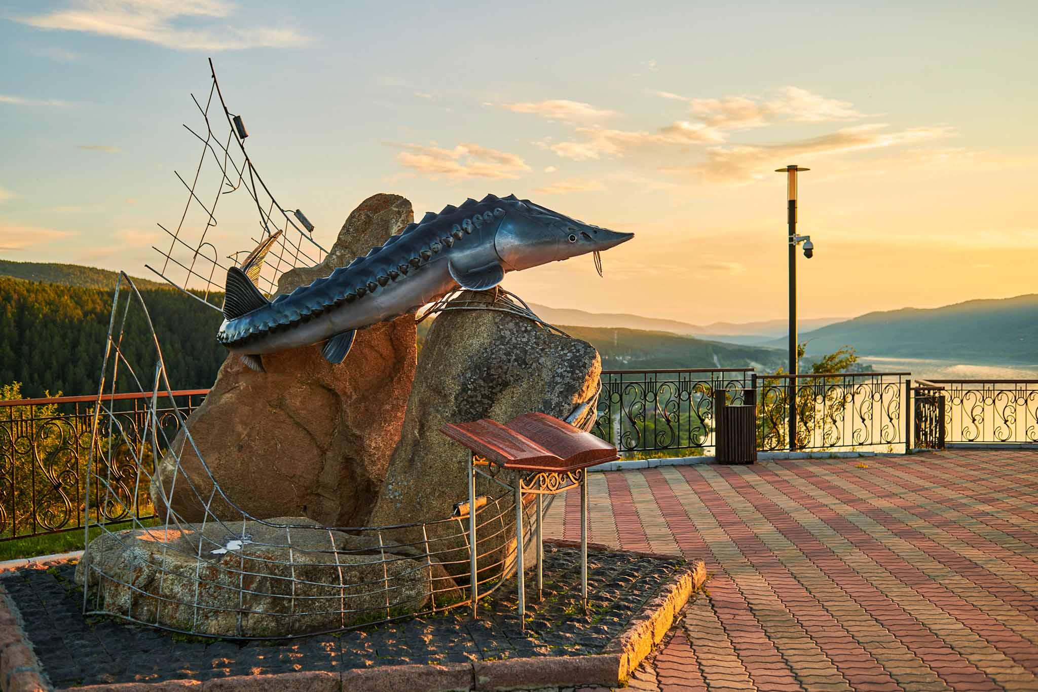 Еще один интересный объект — смотровая площадка «Царь-рыба». Она расположена на трассе между Красноярском и Дивногорском. Здесь есть зона отдыха, где можно прогуляться по деревянным дорожкам мимо беседок и сосен, а затем подняться к скульптуре «Царь-рыба». Она посвящена одноименной повести Виктора Астафьева. Площадка оборудована беседками, скамейками, большой парковкой, есть туалет, кафе и сувенирные магазины.