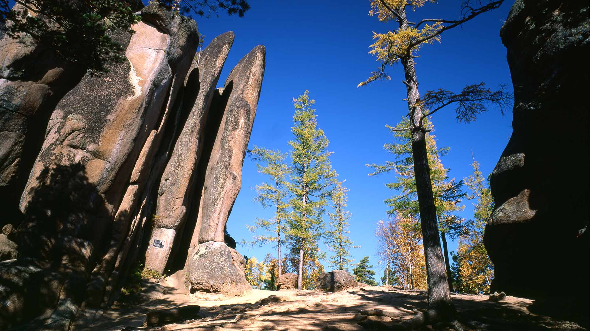 Здесь вас ждут более 100 скал, некоторые из которых получили названия благодаря схожести с силуэтами людей и животных — Дед, Бабка, Внучка, Львиные ворота. Даже школьник справится с тропой «Книга природы», где по пути можно встретить белок и бурундуков. Есть кафе, игровые площадки и настоящая магия природы. Отличный повод вытащить детей на свежий воздух.
