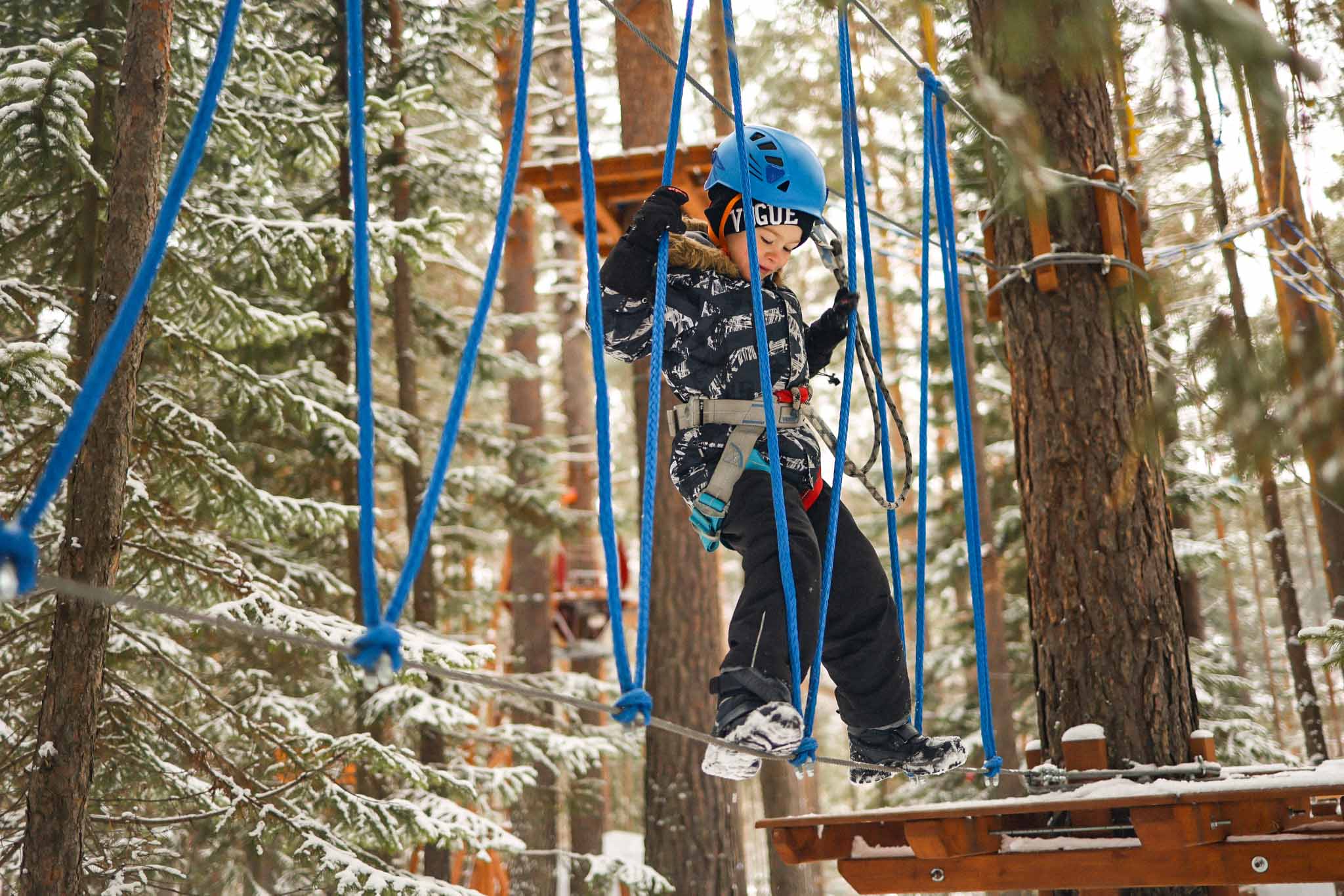 В парке много локаций для активного отдыха и всевозможных развлечений на свежем воздухе. Круглый год доступны несколько трасс веревочного парка. Можно карабкаться как супергерой или перекатывать большие мячи в гигантском сеточном лабиринте. Есть тюбинговые горки и троллей — самые смелые могут перемахнуть через реку с одного берега на другой на высоте 10-этажного дома. Зимой в парке устраивают катания на «банане» или снегоходах по лесу.