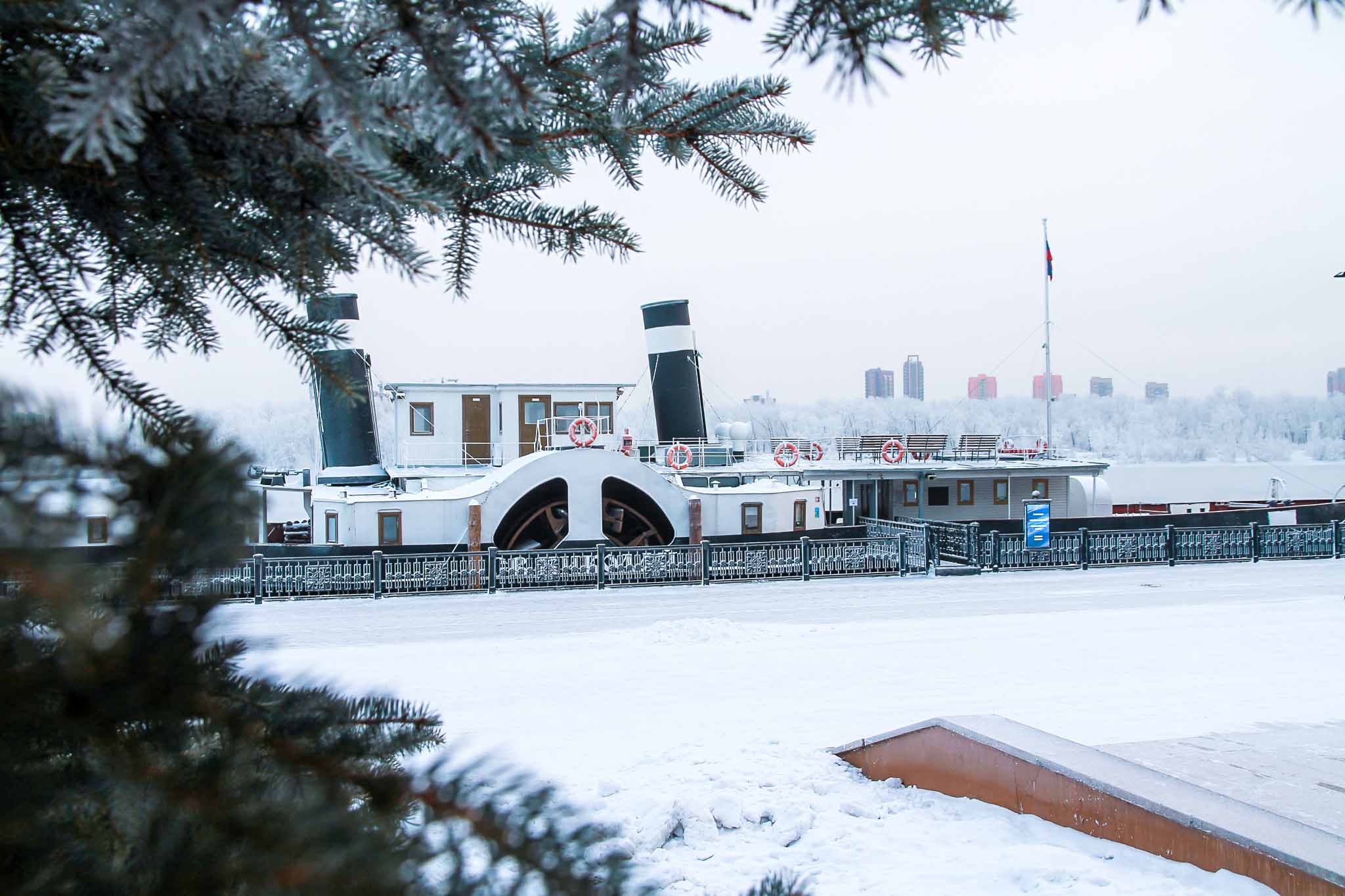 В Красноярске есть уникальная возможность прогуляться по одному из самых старых пароходов в России. Построен он был в далеком 1886 году и на тот момент считался быстроходным и современным. Сейчас он украшает набережную Енисея, как исторический объект.