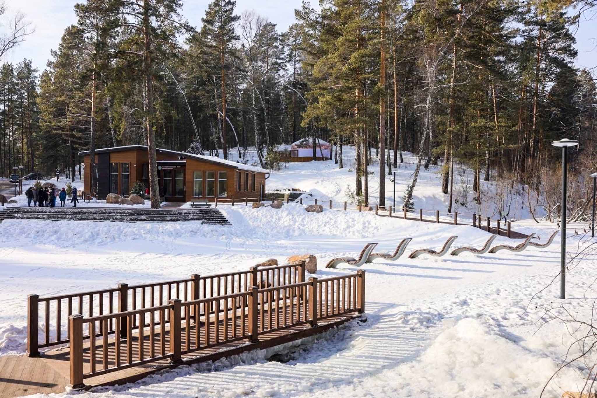 В любое время здесь можно прогуляться, прокатиться на канатной дороге, а по эко-тропе пройти на смотровую площадку. Отсюда открывается прекрасный вид на национальный парк «Красноярские Столбы». Дети останутся в восторге от уникального аттракциона — родельбана. Сани с ручным управлением едут по рельсам, будто американские горки, а скорость достигает 45 километров в час. Такая поездка точно запомнится надолго.