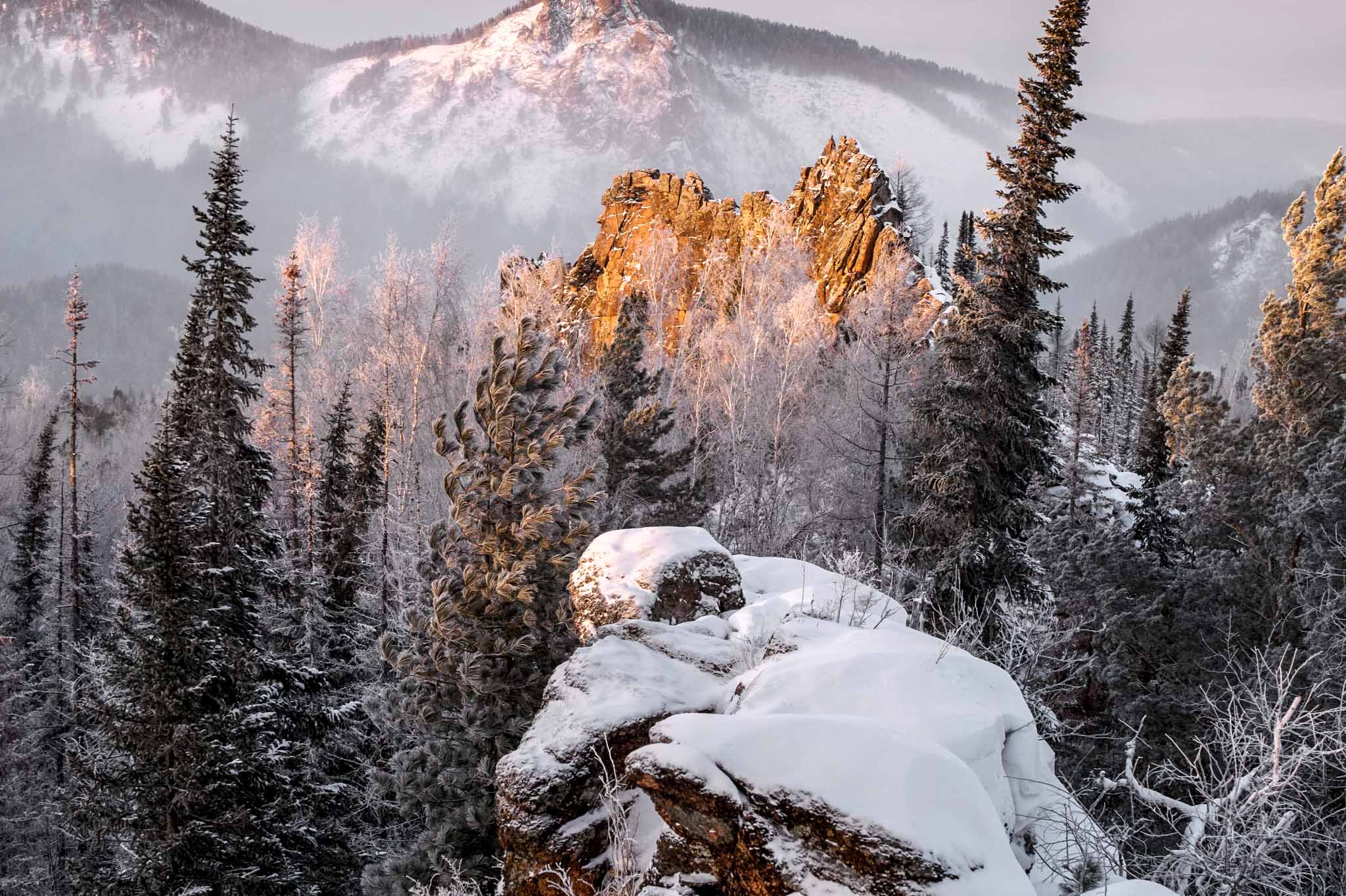 «Столбы» давно стали визитной карточкой Красноярского края и известны далеко за его пределами. Главная достопримечательность национального парка — причудливые сиенитовые скалы, так похожие на силуэты людей и животных. У каждой из них есть свое название — Дед, Бабка, Внук и Внучка, Львиные ворота, Дымоход и многие другие. Всего их более 100.