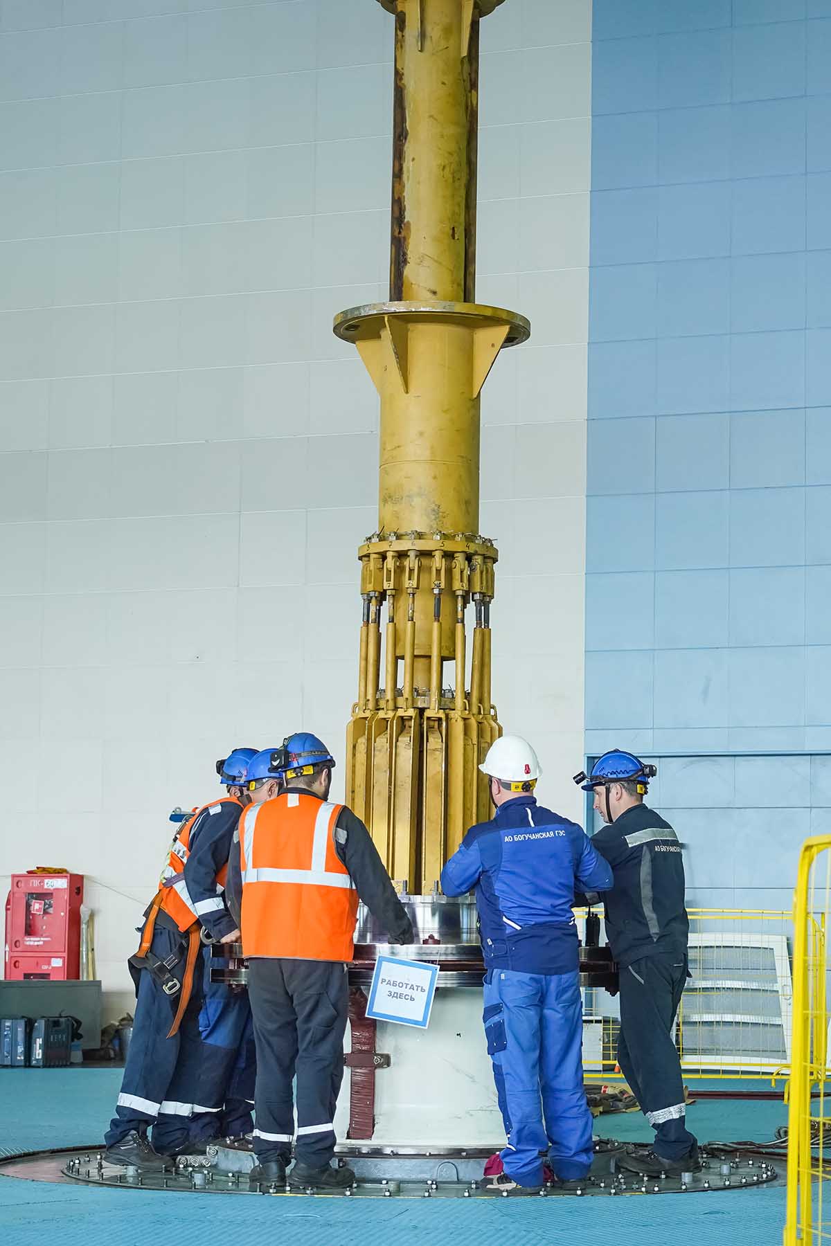 Машинный зал Богучанской ГЭС — место, где из природной мощи реки рождается энергия. Здесь установлены 9 гигантов-гидроагрегатов мощностью по 333 МВт каждый. Вес рабочего колеса агрегата более 156 тонн, диаметр более 7,6 метров — это крупнейшие колеса, изготовленные в России за последние четверть века. Размером с двухэтажный дом. Кстати, по своим габаритам рабочие колеса богучанских турбин превосходят аналогичные узлы гидроагрегатов таких мощных российских гидроэлектростанций, как Саяно-Шушенская и Красноярская.