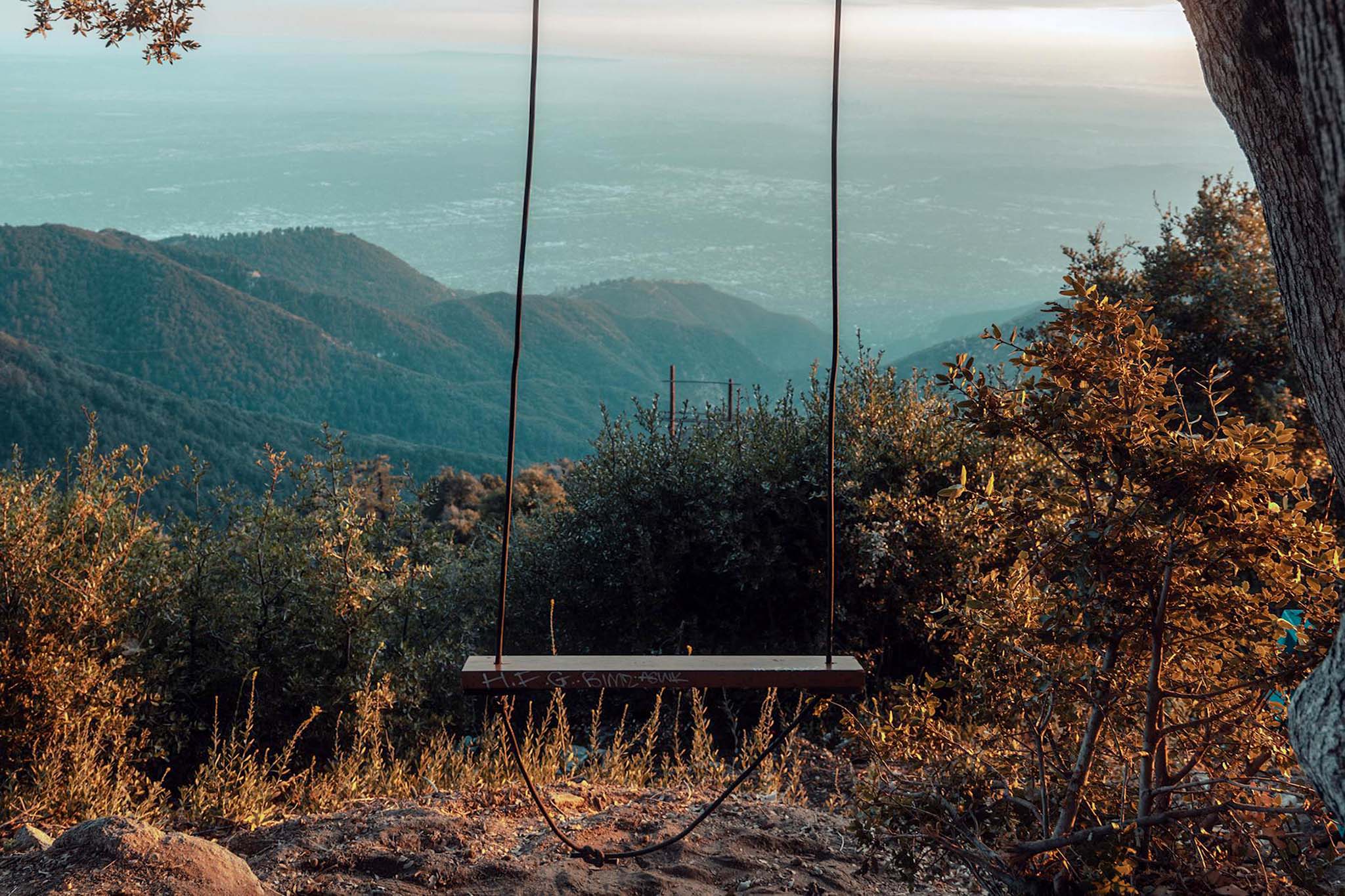 На пригорке смотровой площадкой между двух сосен на канатах закреплены небольшие деревянные качели. С них открывается фантастический вид на долину и изгиб реки — это, пожалуй, самое разрекламированное фотографами место на всем маршруте до Есауловской петли. Периодически канаты обновляют, как и саму качели.
