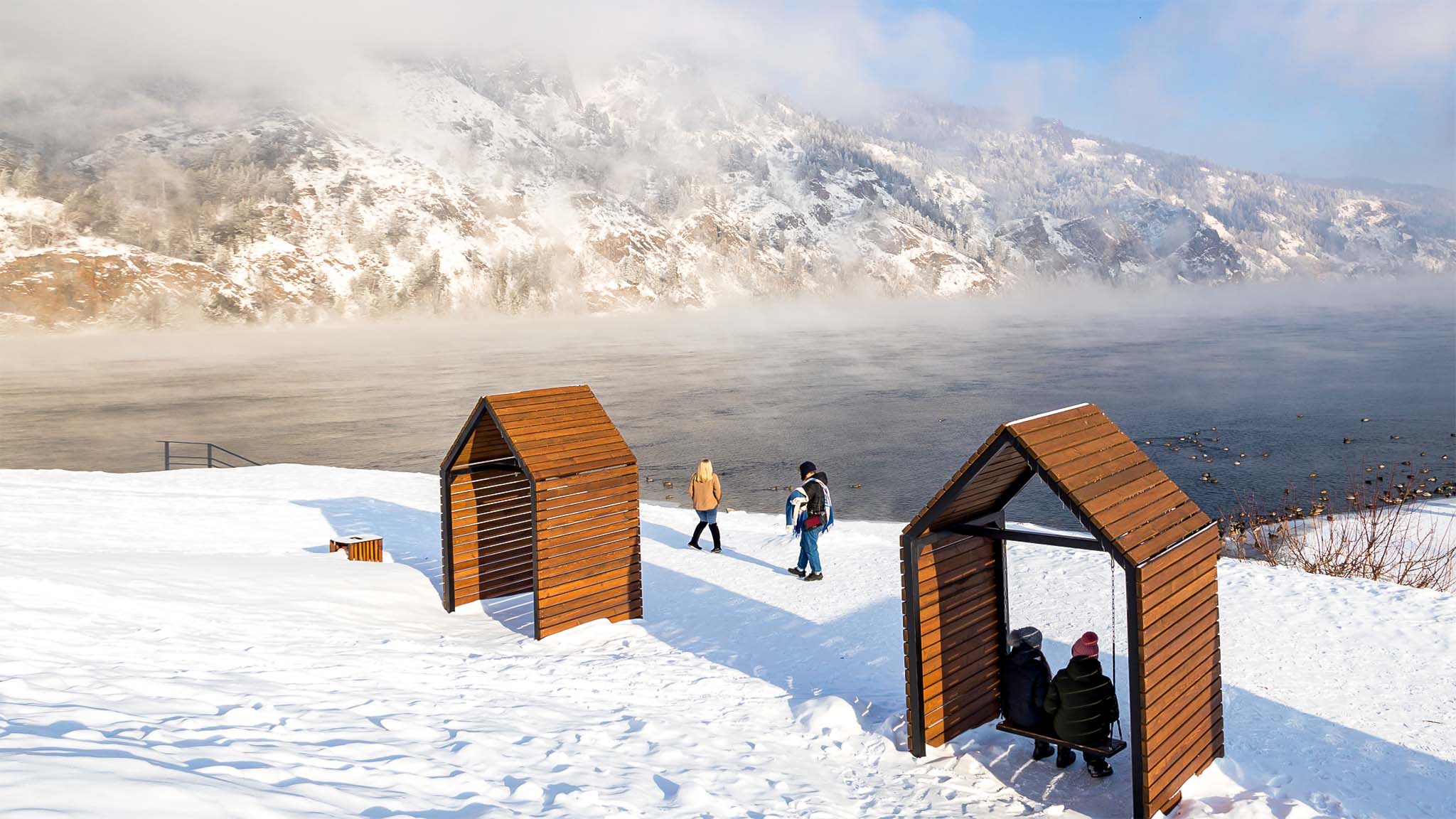 Название курорта как бы сразу говорит о месте — горы здесь дивные, как и красота могучего Енисея. Катиться вниз, любуясь таежными пейзажами, можно по трассам разной сложности — они подойдут и новичкам, и опытным райдерам. Для поклонников беговых лыж есть своя территория активного отдыха.