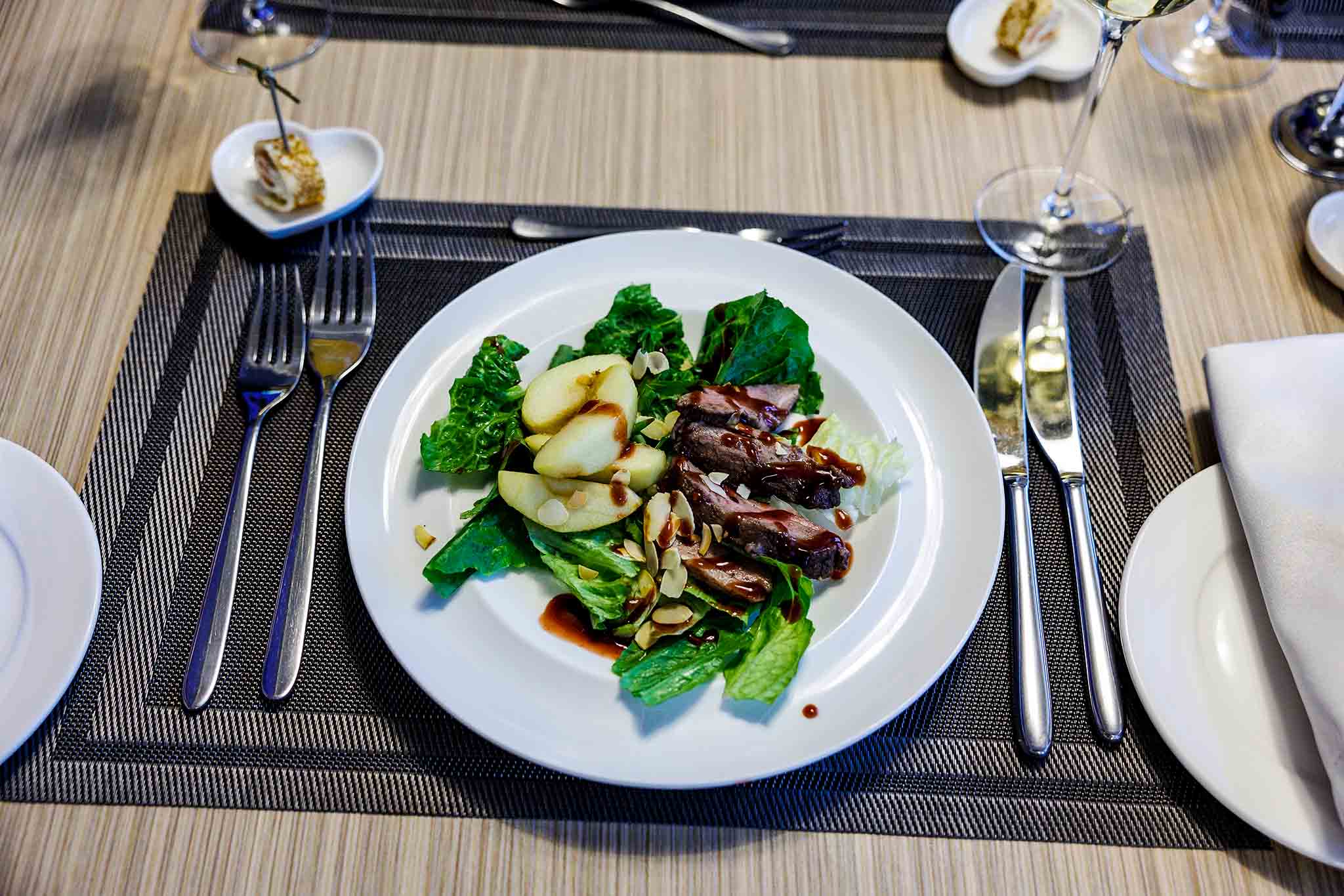 В круизах FUN&SUN предусмотрено трехразовое питание, причем меню авторское от шеф-повара, и оно не повторяется в течение путешествия. На завтрак — очень разнообразный шведский стол с салатным баром и фитнес-продуктами. На обед и ужин предложат выбор из нескольких вариантов блюд с учетом запросов пассажира. Так что если вы, например, вегетарианец или аллергик, можете не волноваться, голодным не останетесь, о вас позаботятся.
