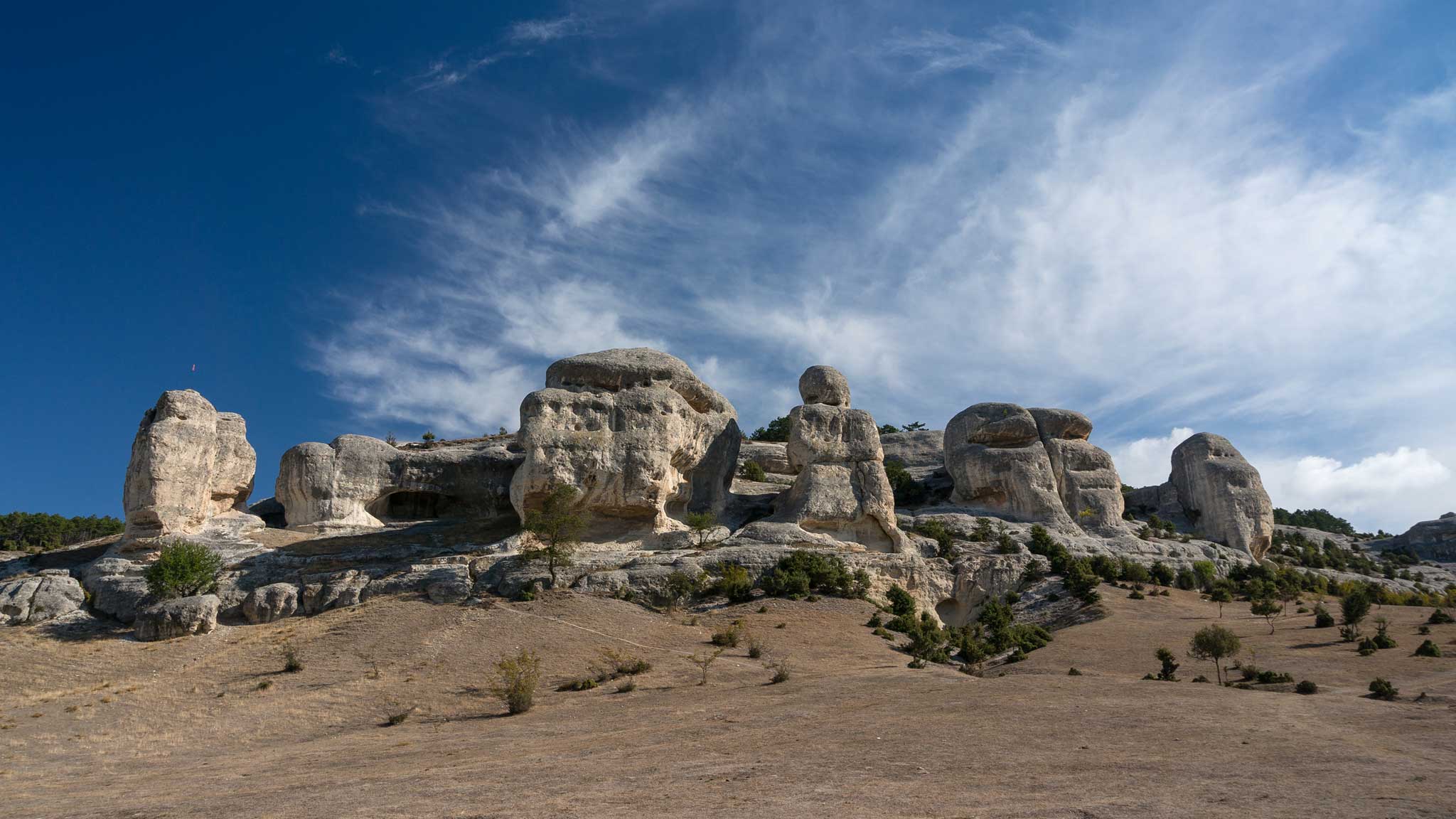 На некоторых сохранились остатки пещерных городов времен раннего Средневековья.