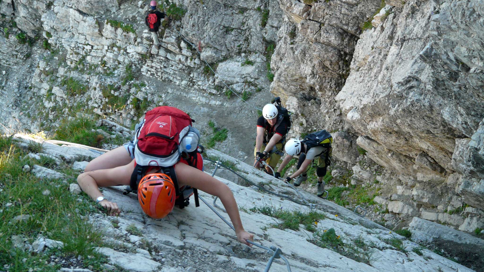 На одной из гор устроен настоящий скалодром: в отвесную каменную стену вбиты железные скобы, по которым можно подняться наверх. Это так называемая via ferrata, или «дорога из железа».