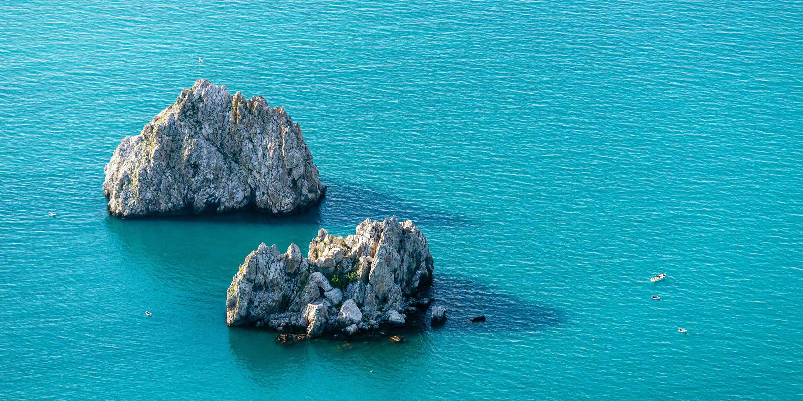 На самом же деле Адалары — это два относительно небольших утеса, поднимающиеся на 48 и 35 метров над уровнем моря у поселка Гурзуф.