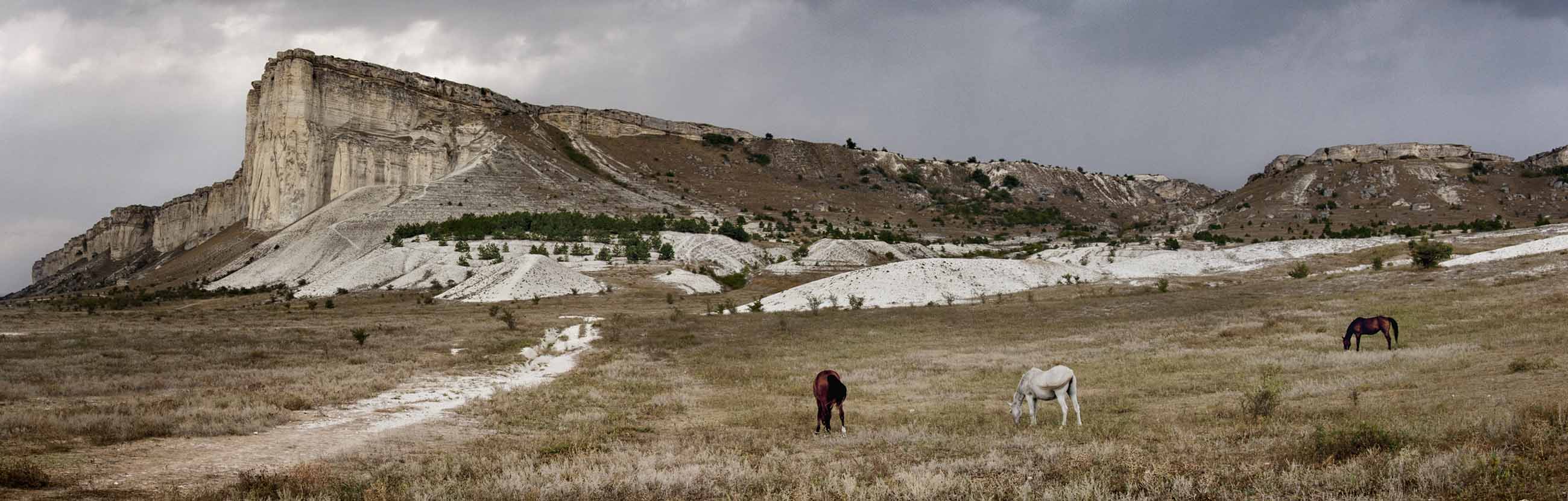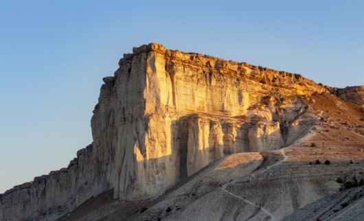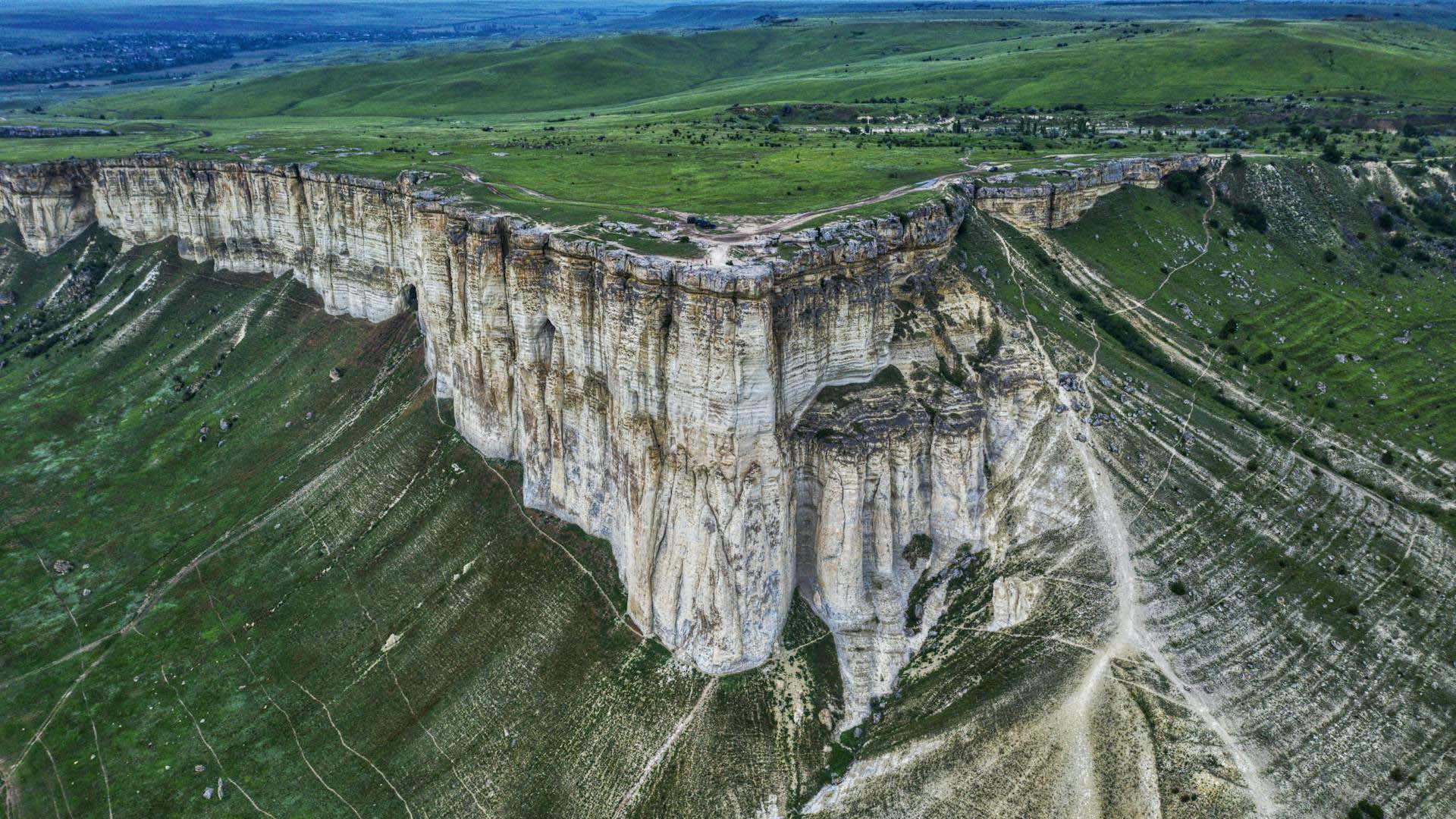 Посреди равнины вырастает из-за горизонта и медленно наплывает исполинская белоснежная стена — именно такую картину видят те, кто подъезжают к Белой скале. И всякий раз она производит неизгладимое впечатление. Крым — горный край, но, пожалуй, больше ни одна гора не выглядит столь фантастично. И дело даже не в каких-то причудливых очертаниях — Белая скала имеет правильную геометрическую форму — а скорее, в общем впечатлении. Кажется, что это не природное образование, а барьер, отделяющий нашу реальность от параллельных миров.