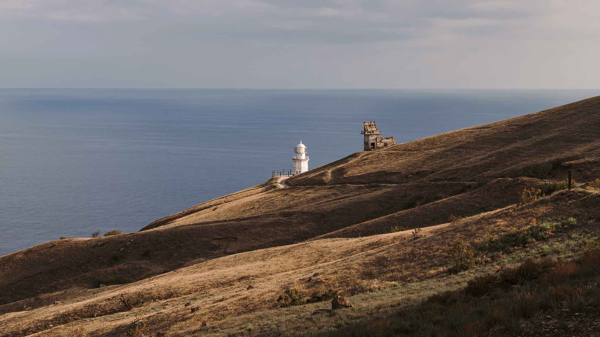 Горный массив врезается в море в нескольких километрах от Судака. С мыса открываются захватывающие виды, там же установлен маяк. Это главная достопримечательность на благоустроенном 22 этапе с названием «Загадочный Меганом».