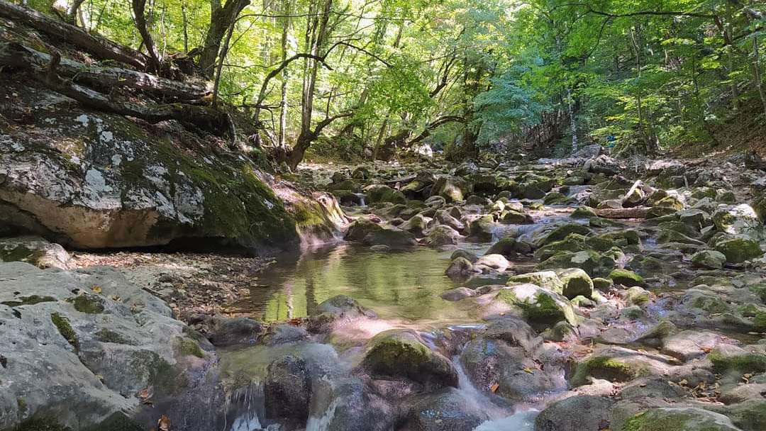 Большой каньон Крыма невероятно красив на всем его протяжении. Можно часами наблюдать, как весело прыгает по камням хрустальная вода под сенью сказочного горного леса с его замшелыми камнями и кряжистыми деревьями.