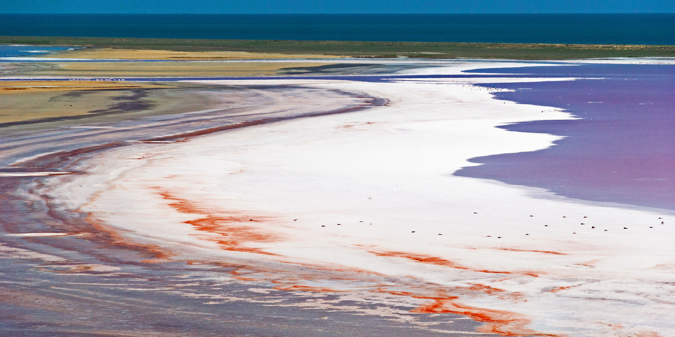 Помогают в этом и колонии рачков — самых солеустойчивых животных на Земле. В пресной воде они умирают всего через час, а в «рассоле» могут обитать 6 месяцев. Чем концентрация NaCl выше, тем лучше чувствуют себя членистоногие. Когда из-за жары на озере выпаривается большая часть воды, артемии приобретают красноватый оттенок.