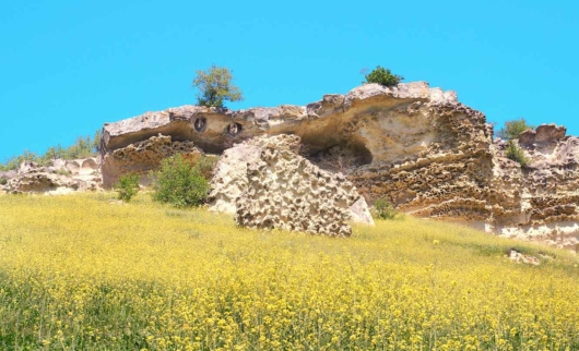 От некогда развитого города до наших дней дошли в основном рукотворные пещеры. Их тут более сотни. Некоторые соединяются в своеобразные анфилады, но большинство представляют собой выдолбленные в камне глубокие гроты, в стенах которых выбиты ниши для светильников (в них даже сохранились следы копоти).