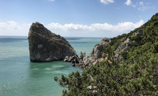 Скала Дива – отторженец Крымских гор, который в незапамятные времена попросту «сполз» в море, а штормы, ветра и землетрясения выступили в роли скульпторов, придав куску скалы форму девушки с запрокинутой головой и длинными волосами.
