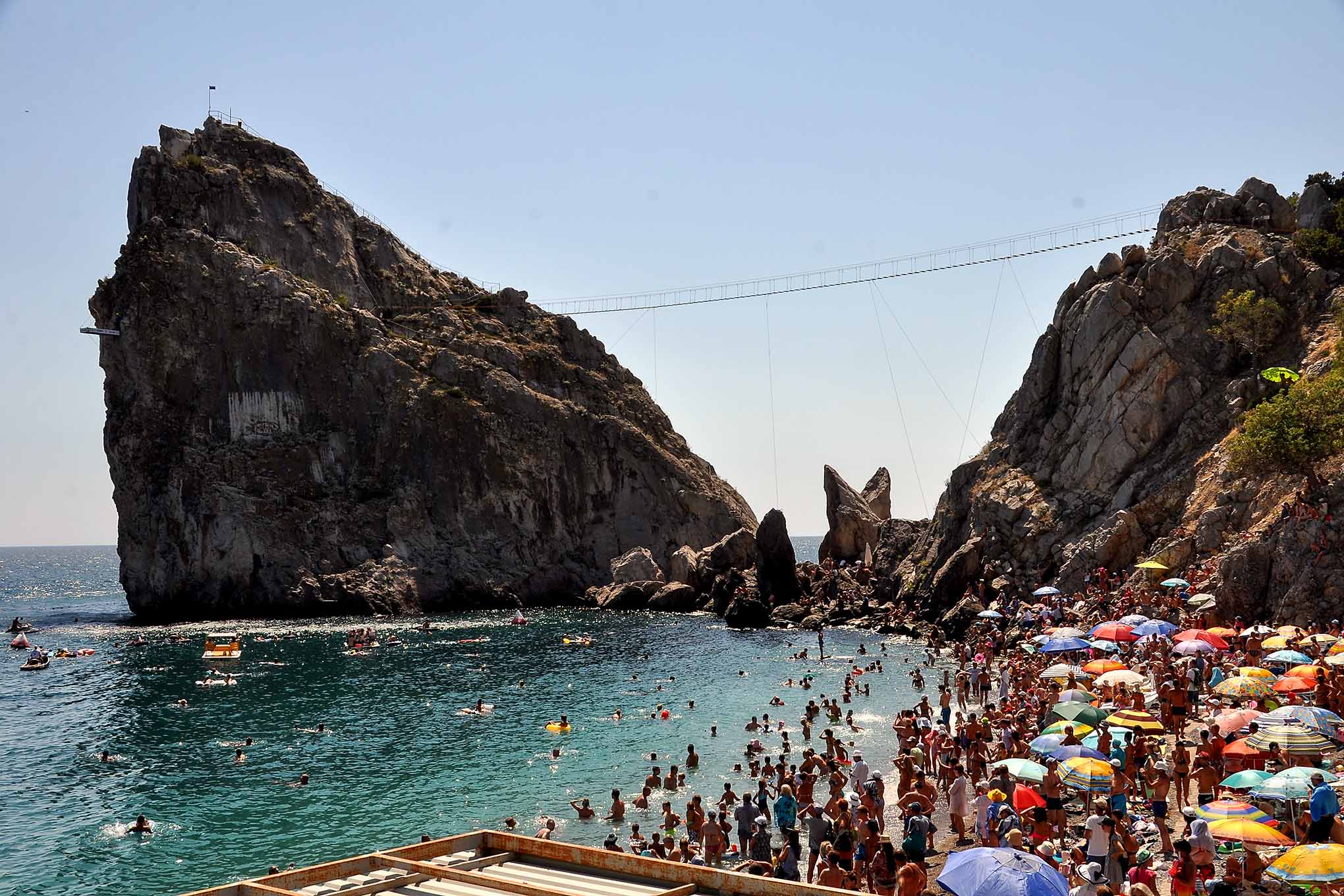 На скалу также ведет подвесной мост, расположенный на 30-метровой высоте. Протяженность этого маршрута около 100 метров. Одновременно идти по мосту могут не более 3 человек, причем на большом расстоянии друг от друга. На туристов надевают страховочные системы.