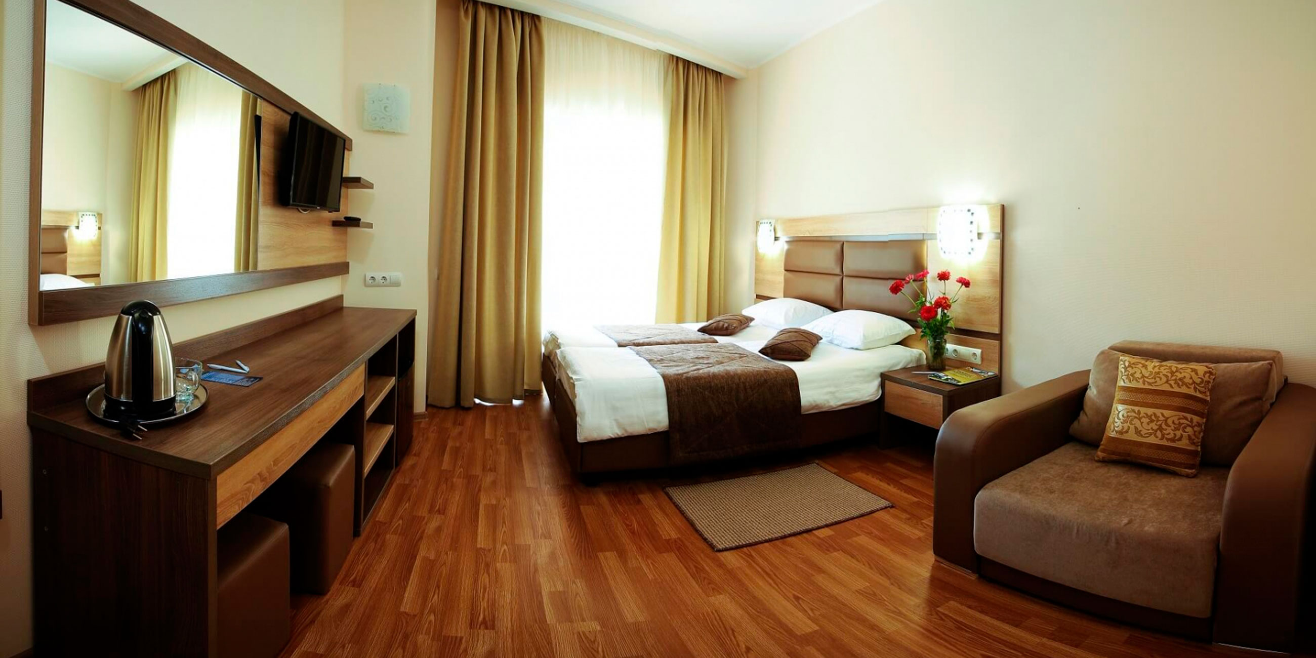 Заскучали? Отправляйтесь в развлекательный центр, там вас ожидает fresh-бар, настольный теннис и бильярд, кинозал, игровая комната для детей. Ежедневно для гостей проводятся развлекательные мероприятия по тематическим программам и концерты с участием приглашенных артистов, а также зажигательные дискотеки и караоке. А еще не забудьте посетить аквакомплекс «Саксония» с бассейном площадью 600 кв.м.