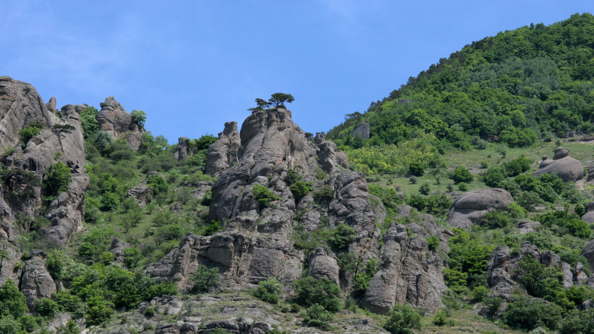 Гора Демерджи (в переводе с тюркского «кузнец») — одна из самых живописных в Крыму. Благодаря игре воды и ветра многие скалы тут стали похожи на изваяния гигантских сфинксов. Один из них виден даже с трассы «Симферополь — Алушта» и издалека напоминает сидящую на троне величественную фигуру, за что в народе эту скалу окрестили природным портретом императрицы Екатерины Великой.