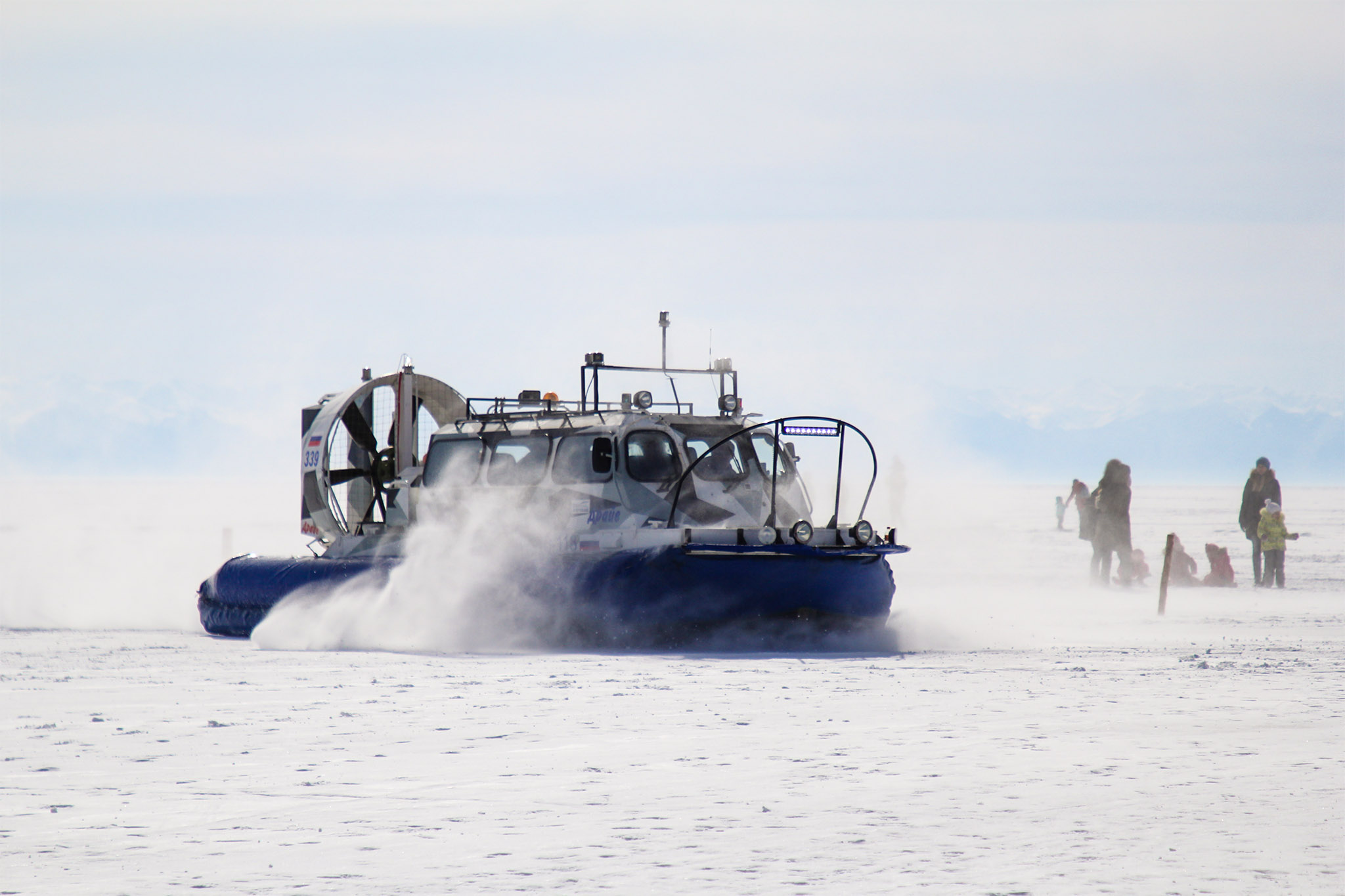 Замерзший зимний Байкал невероятен: узоры на льду, загадочные гроты, причудливые торосы, нагромождения обломков льда. Для прогулок по озеру можно выбрать один из следующих вариантов: пешком, на коньках, собачьих упряжках или хивусах (мини-катерах с воздушной подушкой). Пункт проката коньков можно найти на Ольхоне или в Листвянке.