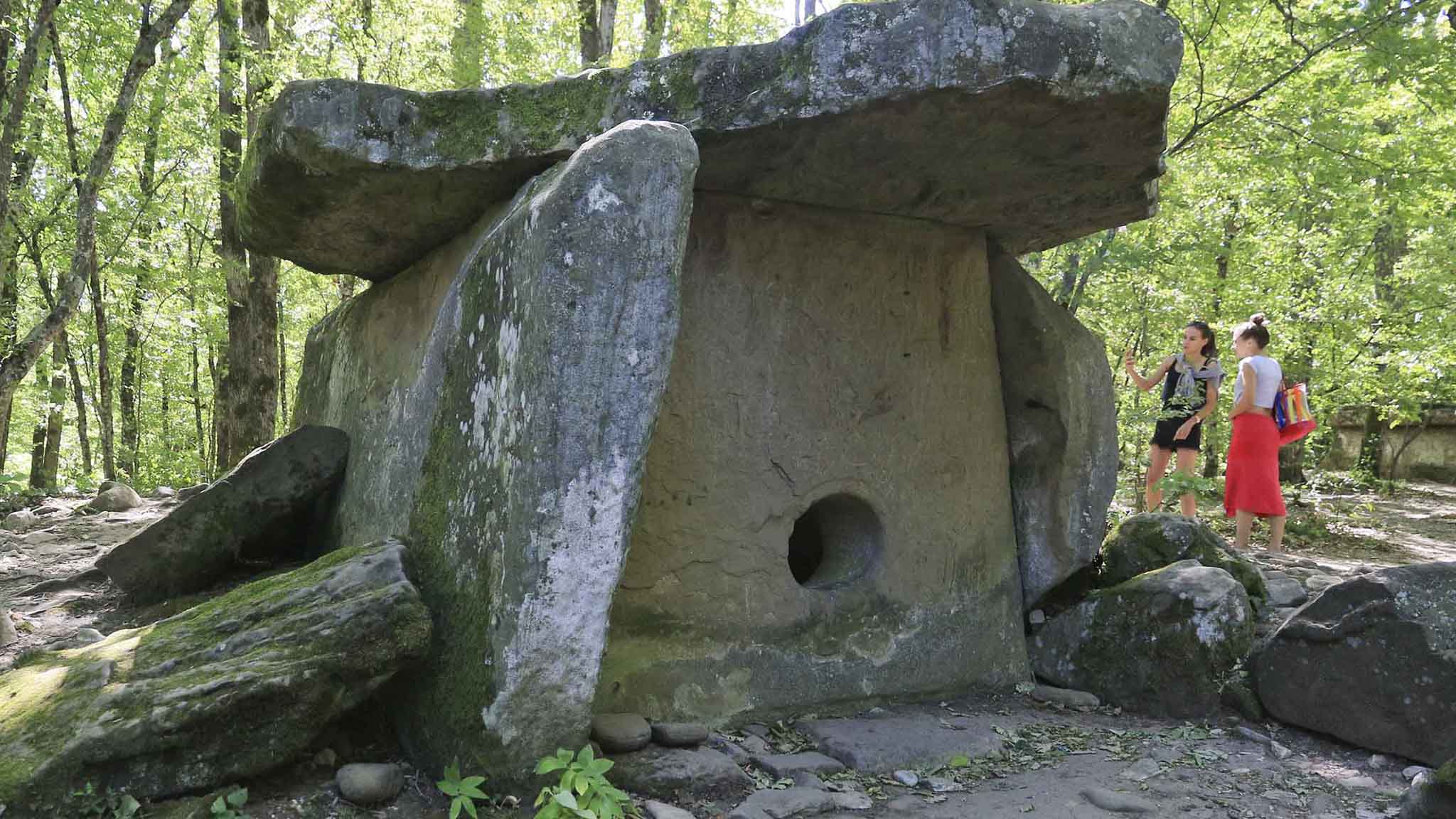 Еще один обязательный пункт программы — дольмены Туапсе. Они представляют собой древние погребальные сооружения, состоящие из пяти плит (четыре — это стены, в одной из которых вырезано отверстие для входа, и одна — крыша). Ученые полагают, что воздвигнуты дольмены были в 1300-2400 годах до нашей эры.