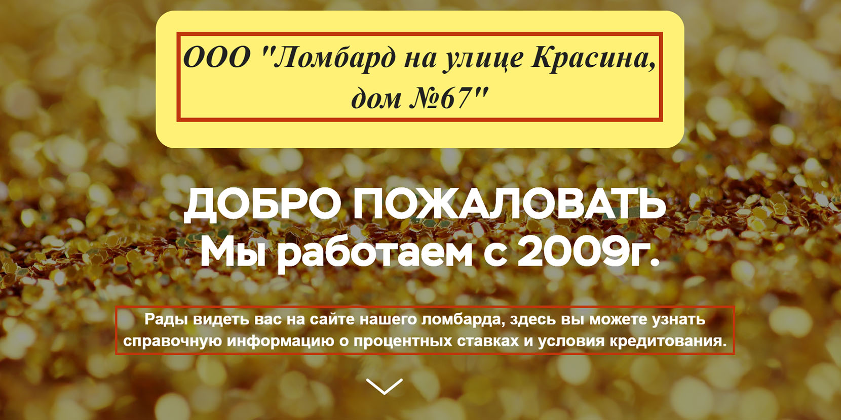 Ломбард выдает кредиты под залог золотых ювелирных изделий. Для оформления требуется только паспорт. Срок займа составляет три дня, после чего начинается льготный период длительностью один месяц. Процентная ставка остается фиксированной на весь период займа. В любой рабочий день вы можете выкупить залог или оплатить проценты для продления договора. По окончании срока займа также можно выкупить залог или оплатить проценты до момента его реализации.