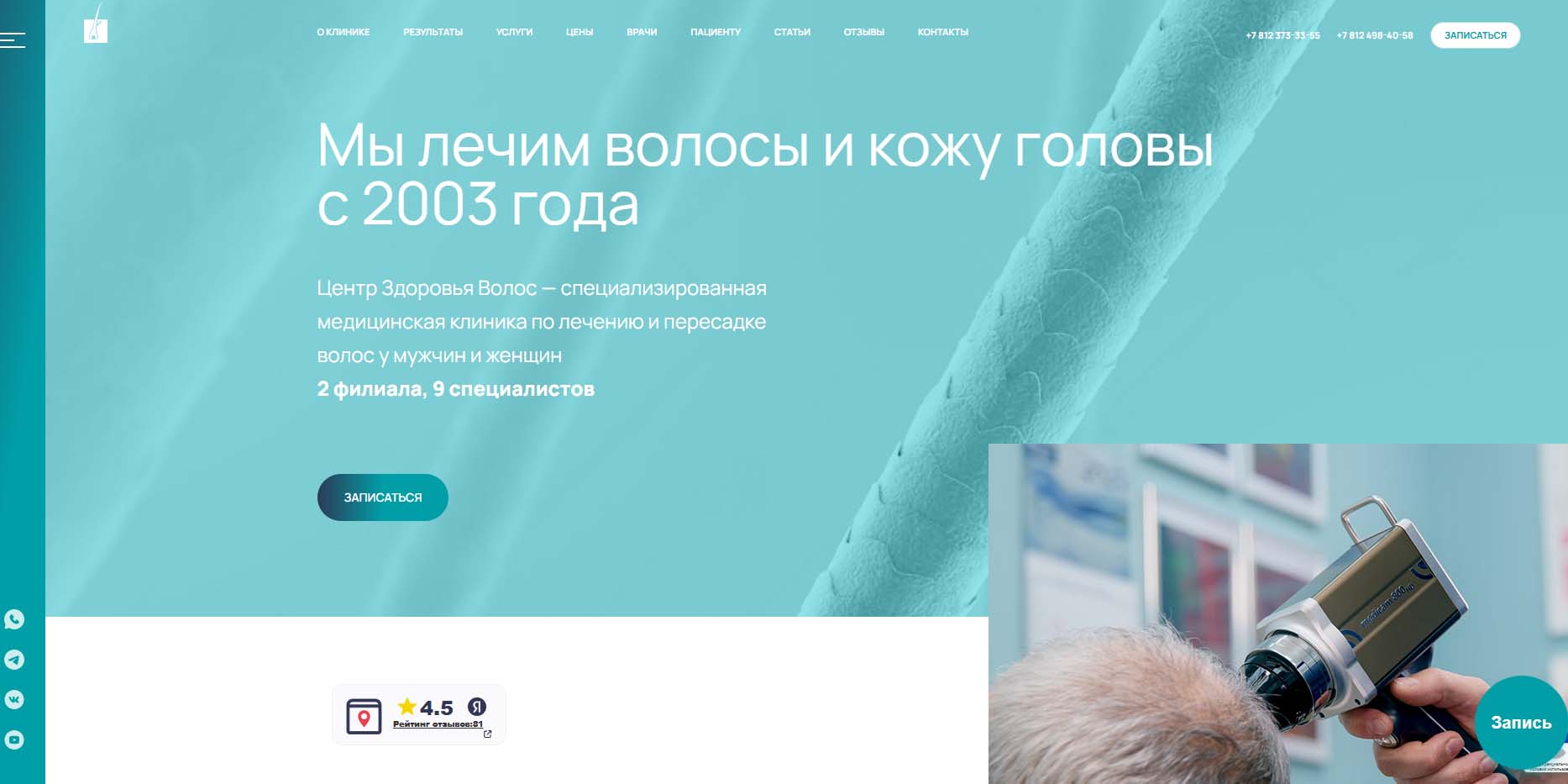 Предлагает услуги по пересадке и лечению волос у мужчин и женщин при различных видах облысения и заболеваниях кожи волосистой части головы. Пациентов принимают врачи с многолетним опытом работы в области трихологии и трансплантологии, прошедшие обучение в ведущих зарубежных и отечественных клиниках. В центре используют современное оборудование и передовые мировые технологии. Есть возможность бесплатно проконсультироваться онлайн.