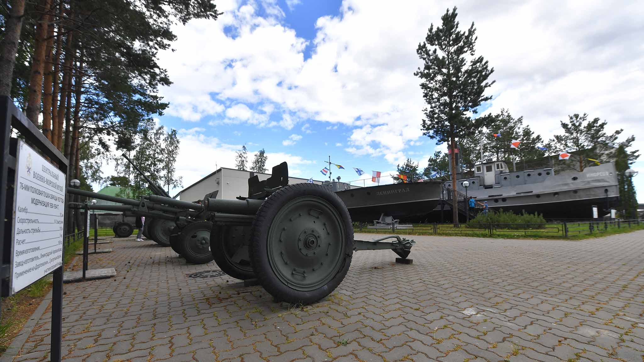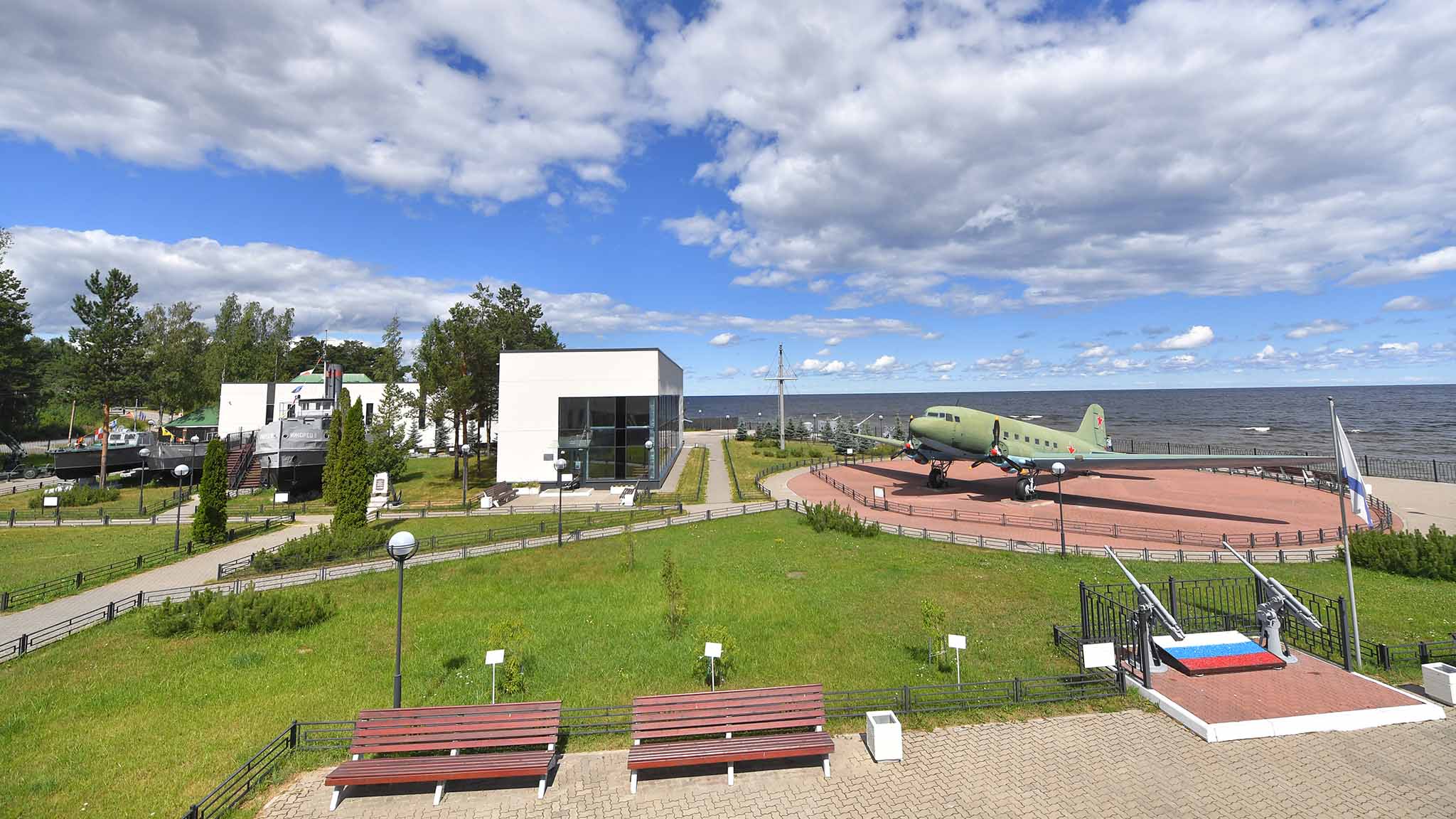 На открытых площадках наибольший интерес представляет выставленная боевая техника и транспорт времен войны, среди которых самолет Ли-2, вывозивший тяжелораненых из осажденного Ленинграда, буксирный пароход «Ижорец- 8», обеспечивающий перевозки грузов на баржах по Ладожскому озеру, самоходный двух трюмный тендер, построенный в 1942 году на Адмиралтейских верфях, а также разнообразная корабельная артиллерия, полевые пушки и гаубицы.