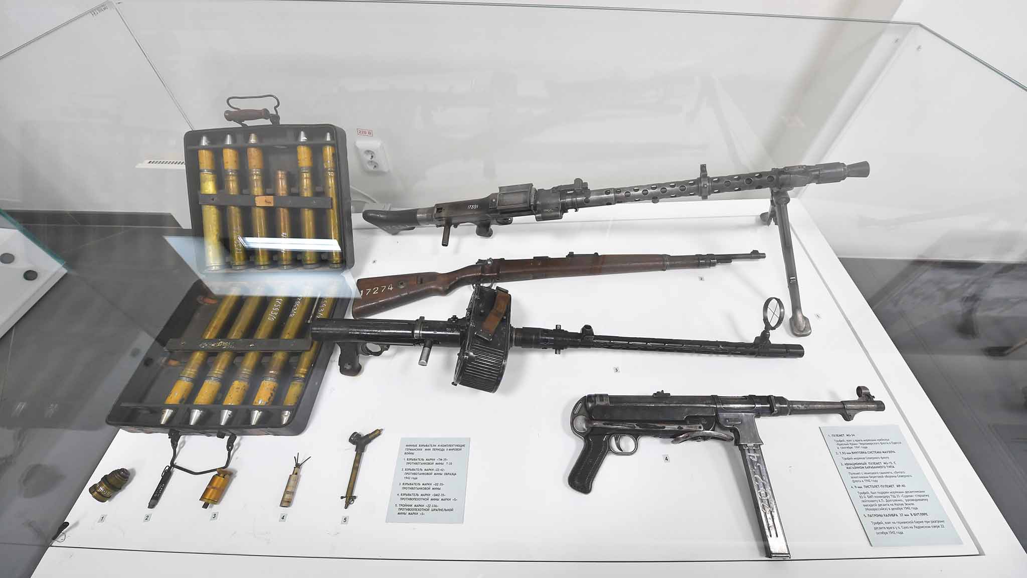 В ангаре для крупногабаритных экспонатов, расположенном слева от входа в музей, находится ГАЗ-АА – самый массовый автомобиль первой половины XX века, знаменитая «полуторка», поднятая со дна озера в 1947 году, и автомобиль ЗИС-5 «Захар», который после освобождения города от немецко-фашистских захватчиков, доехал до самого Берлина. Есть здесь непременная спутница солдата на войне – полевая кухня, и гроза моряков – несколько образцов морских мин и торпед.