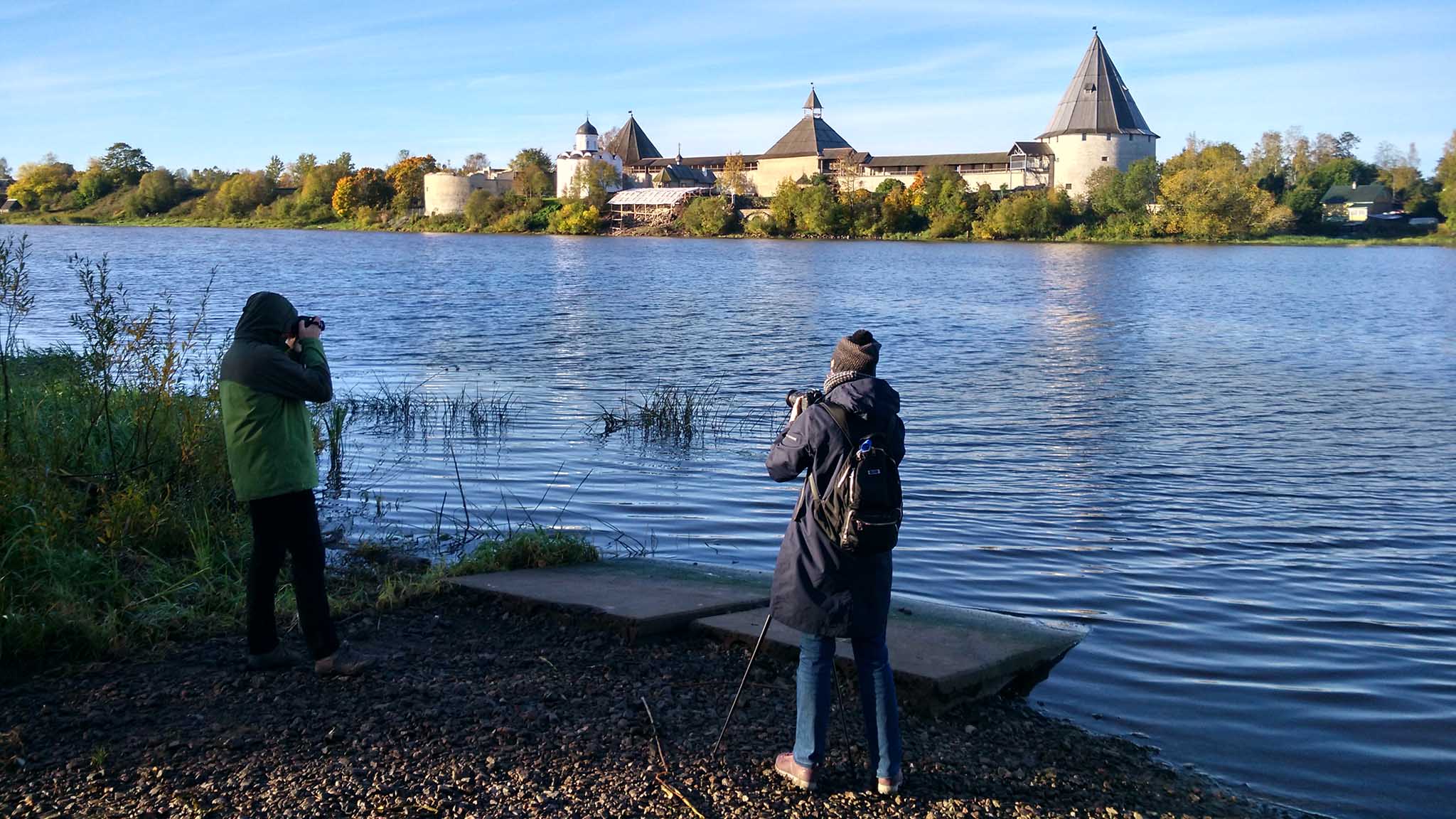 Староладожская крепость невероятно живописна. Очень красивые виды на нее открываются с противоположного берега Ладожки — постарайтесь захватить в кадр не только башни, но и их отражения в водной глади. Выбирая удачный ракурс следите за тем, чтобы на фото было поменьше проявлений современной цивилизации: проводов, столбов линий электропередачи и прочего — так вы сможете лучше передать средневековую атмосферу.