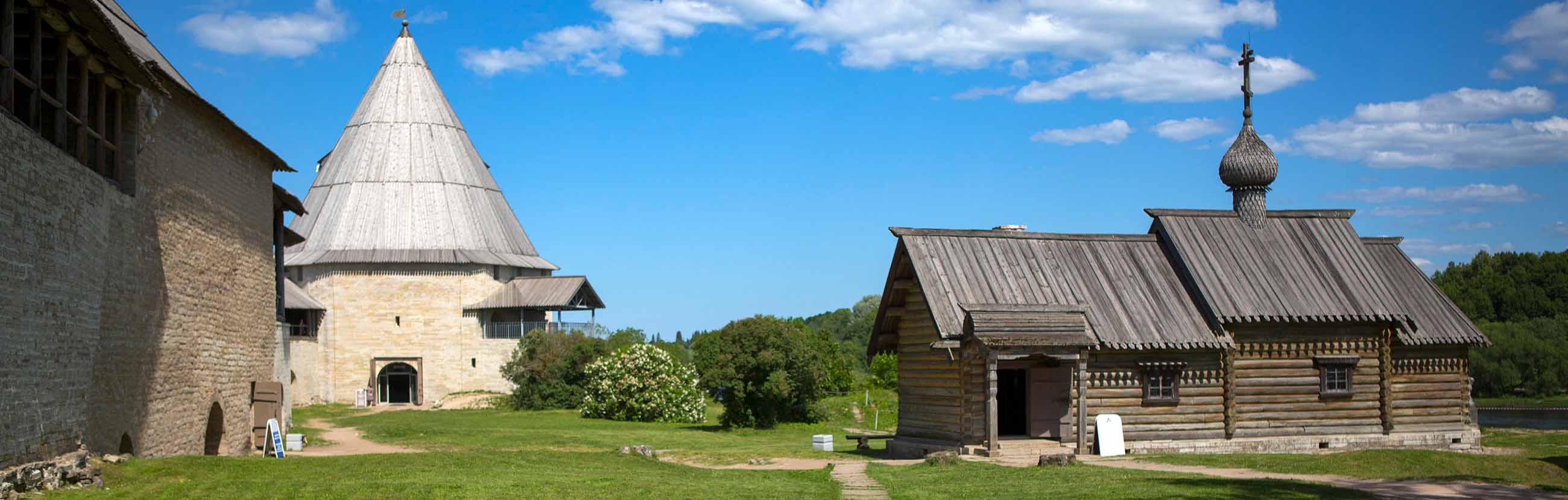Стоит побродить вокруг крепости и полюбоваться ее могучими башнями и стенами, прикоснуться к древним руинам. У южной крепостной стены сохранились валы построенного в XVI веке «Земляного города». Полюбуйтесь находящейся на крепостной территории Георгиевской церковью. Возведенный в XII веке белокаменный храм гармонично соединил в себе черты византийского и новгородского зодчества. Неподалеку расположена деревянная церковь святого Дмитрия Солунского. Построена она была в XVII веке, ветшала, несколько раз перестраивалась и восстанавливалась, сохранив свой первоначальный облик.
