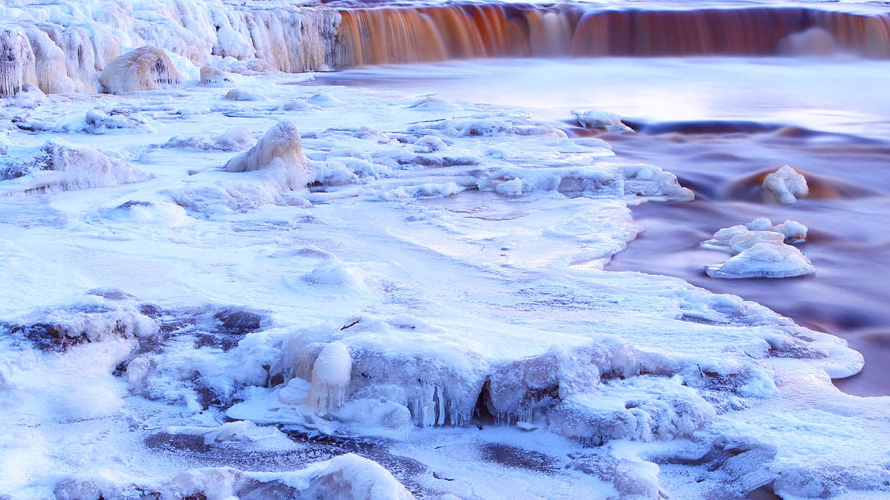 Зимой река у водопада никогда полностью не замерзает. Но в это время года необходимо быть аккуратным при спуске с обледеневших берегов и выходе на кромку льда.