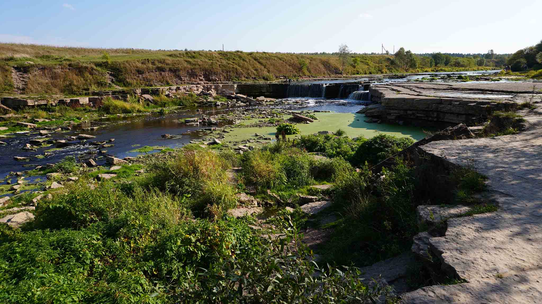 Путешественникам сначала открывается каньон реки Тосны. Несмотря на то, что размеры водопада не внушительны, его посещение оставляет незабываемые впечатления. Спустившись с крутого берега по специальным ступеням, вы можете вплотную подойти к низвергающейся воде. Реку выше водопада можно перейти вброд — здесь ее глубина не более 15 см, при этом необходимо обратить внимание на то, что на дне могут находиться острые камни.